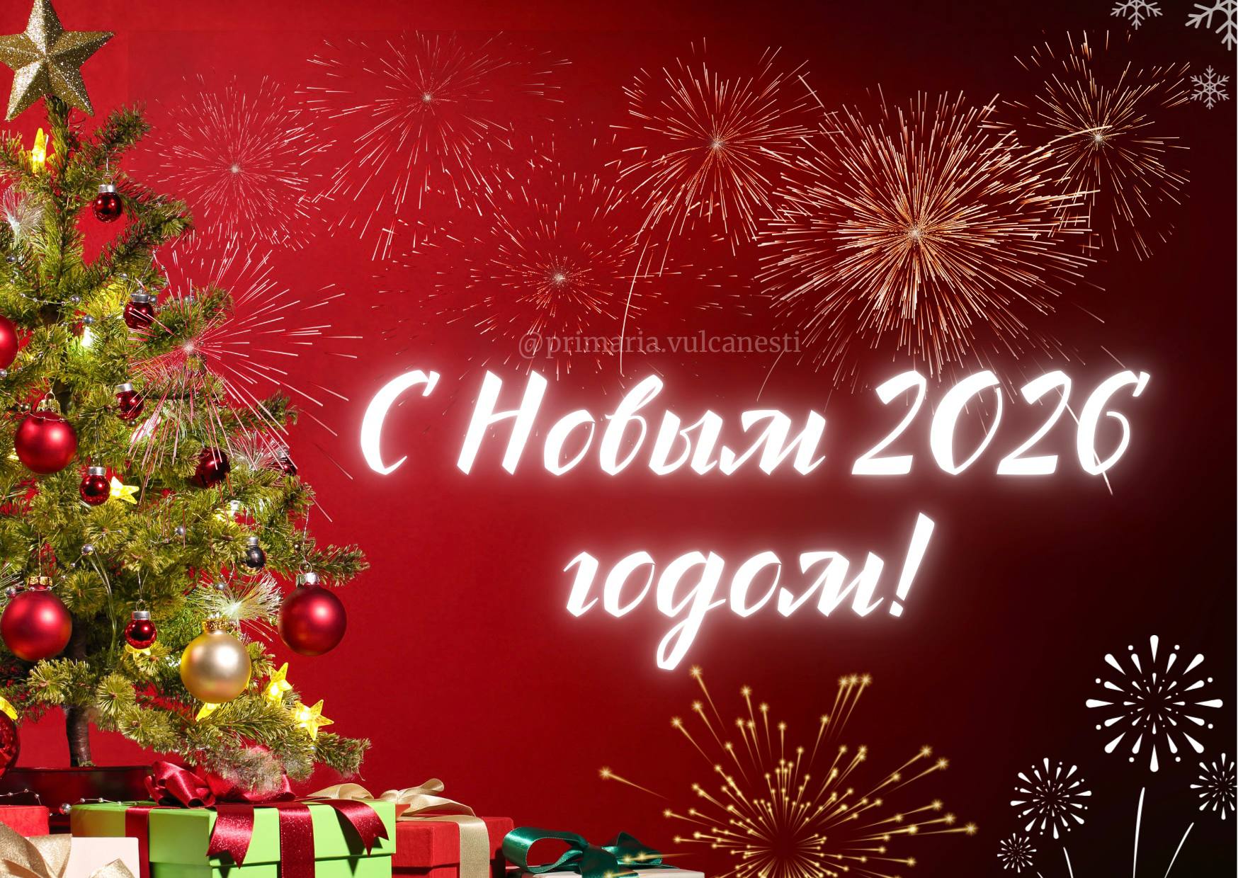 Примария города Вулканешты и Городской совет поздравляют всех жителей города с Наступающим 2026 годом.