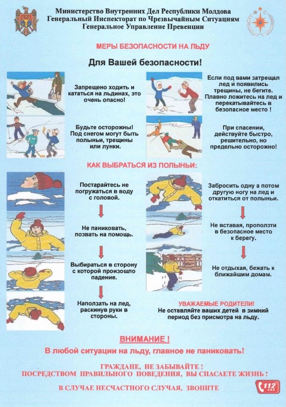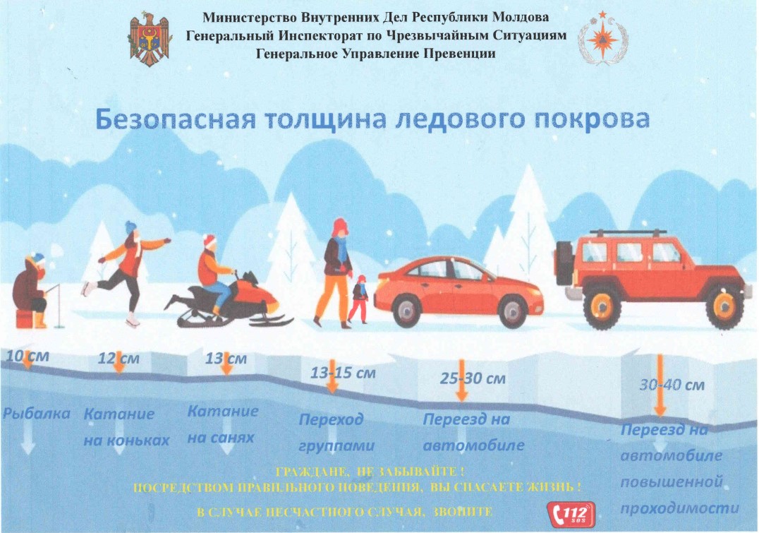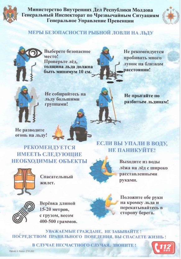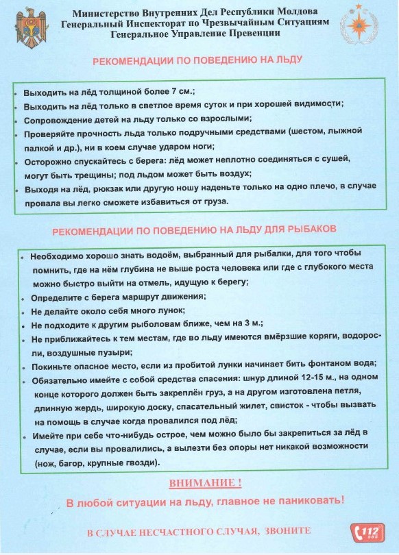С учётом понижения температур и во избежание риска возникновения чрезвычайных ситуаций на водоёмах в зимний период, Служба предупреждения чрезвычайных ситуаций г. Вулканешты настоятельно рекомендует жителям строго соблюдать правила безопасности при выходе на лёд.