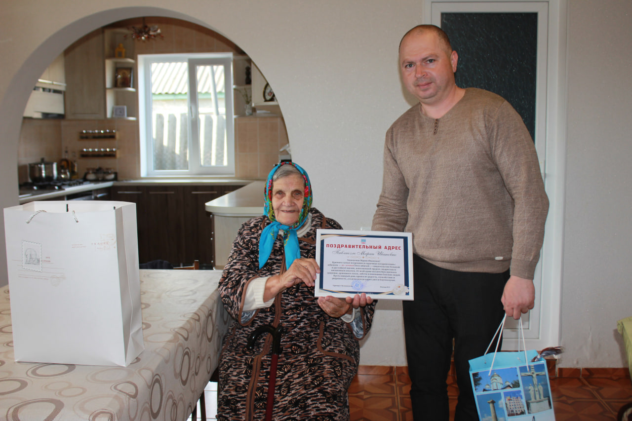 Заместитель примара Копущулу В.Г. от имени примэрии города поздравил Павлиогло Марию Ивановну с почётным юбилеем — 90-летием.
