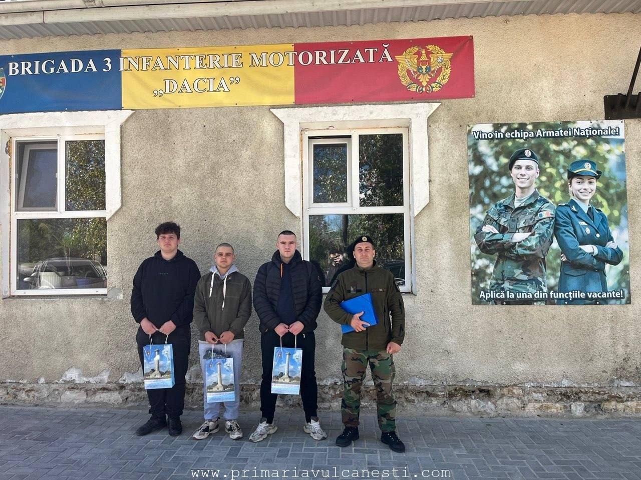 Вчера, 27 апреля, в ряды Национальной армии Республики Молдова отправились трое новобранцев из города Вулканешты. Службу они будут проходить в 3-й мотопехотной бригаде «Dacia» города Кагул.