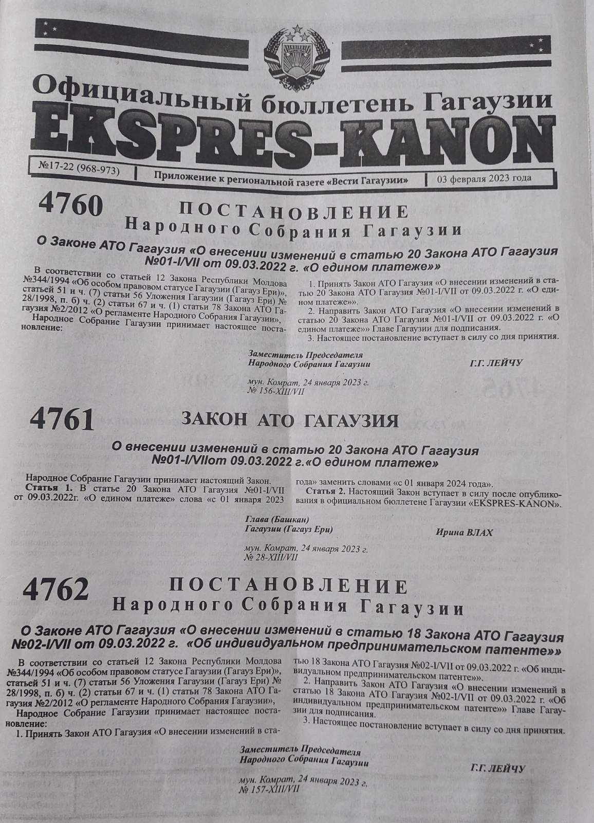 Гагаузии — опубликованы.