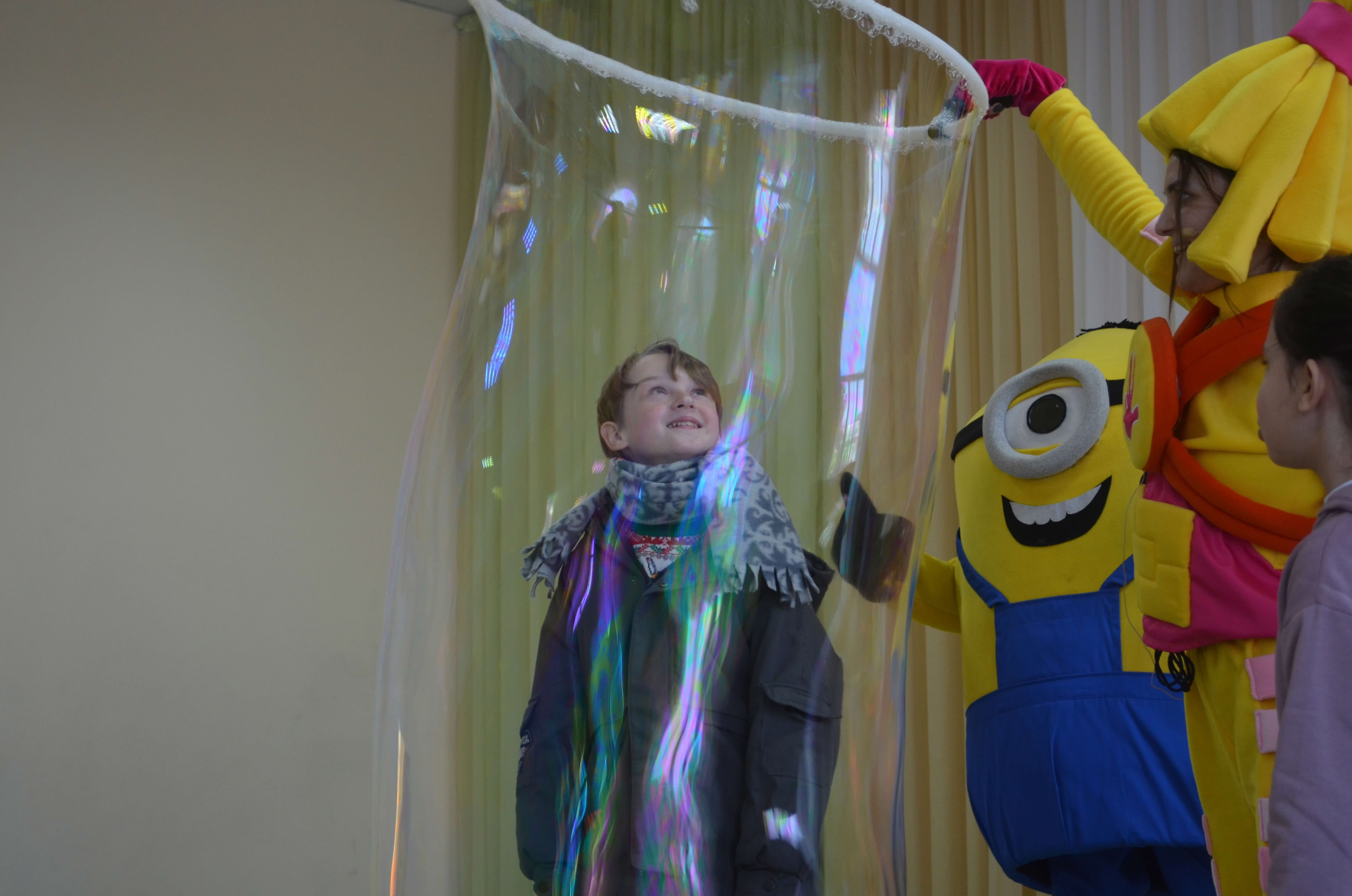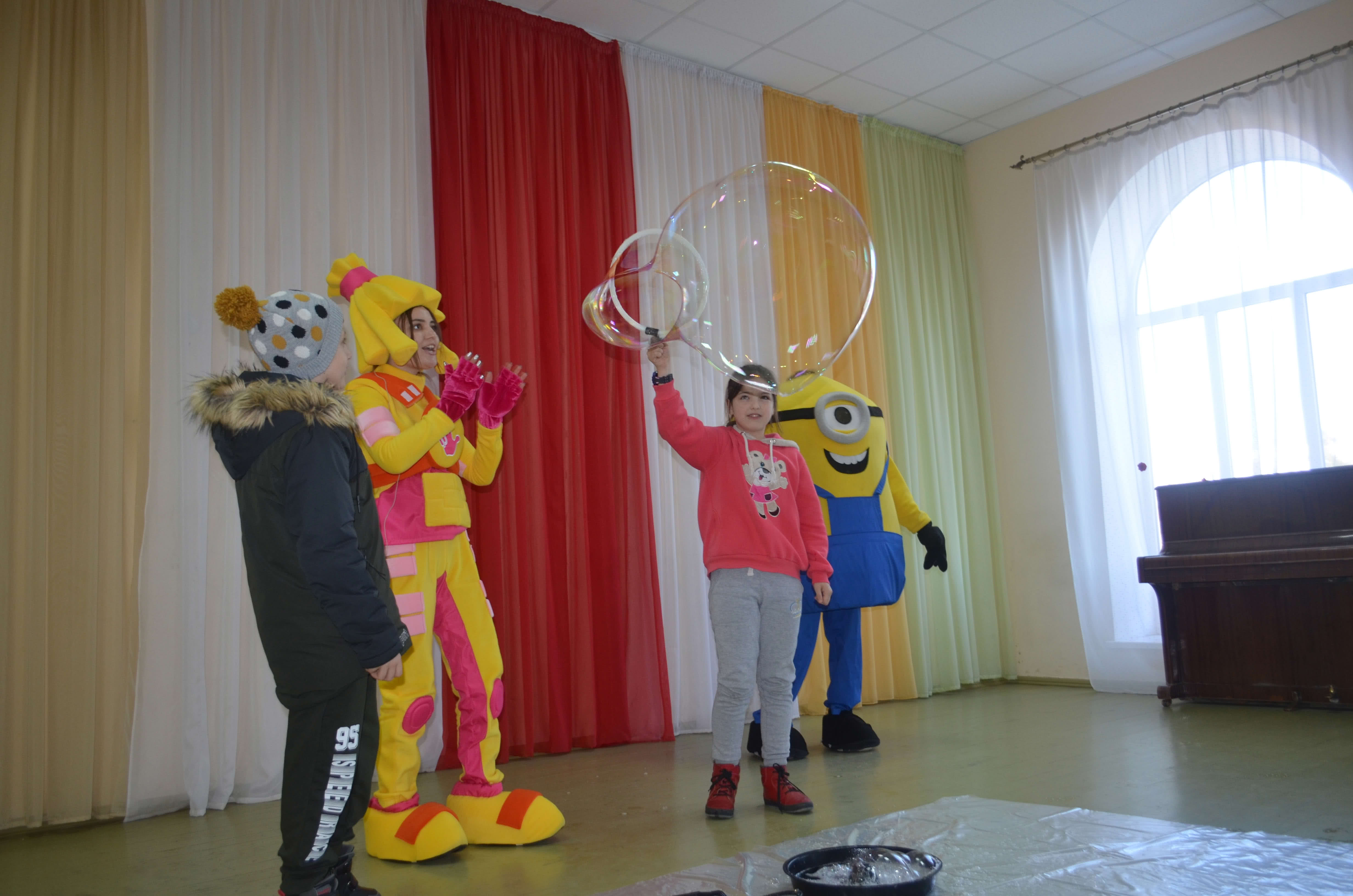 С прошедшими Новогодними праздниками маленьких жителей пришли поздравить сказочные персонажи — Фиксики и Миньон. Детки разгадывали загадки, пели песни и танцевали. Особый восторг вызвало шоу мыльных пузырей.