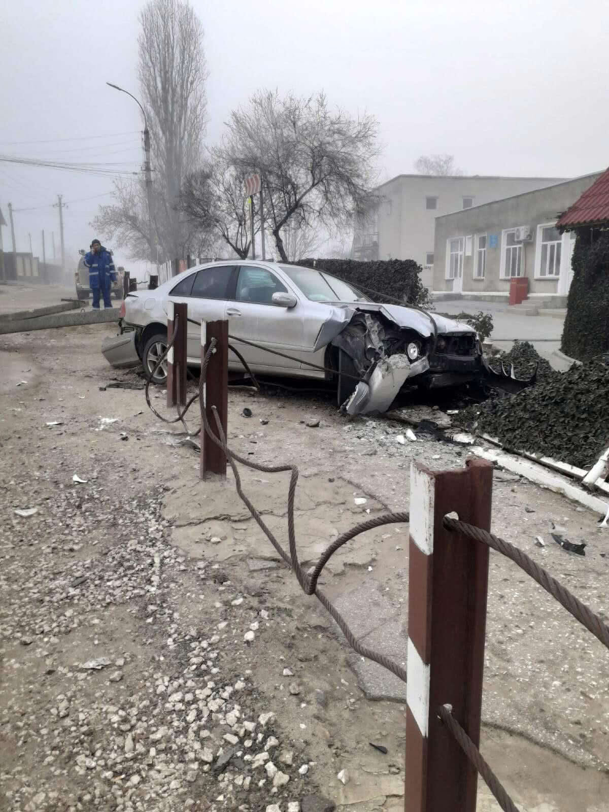 Водитель снес защитное ограждение, въехал в забор детского сада №7 и скрылся с места аварии.