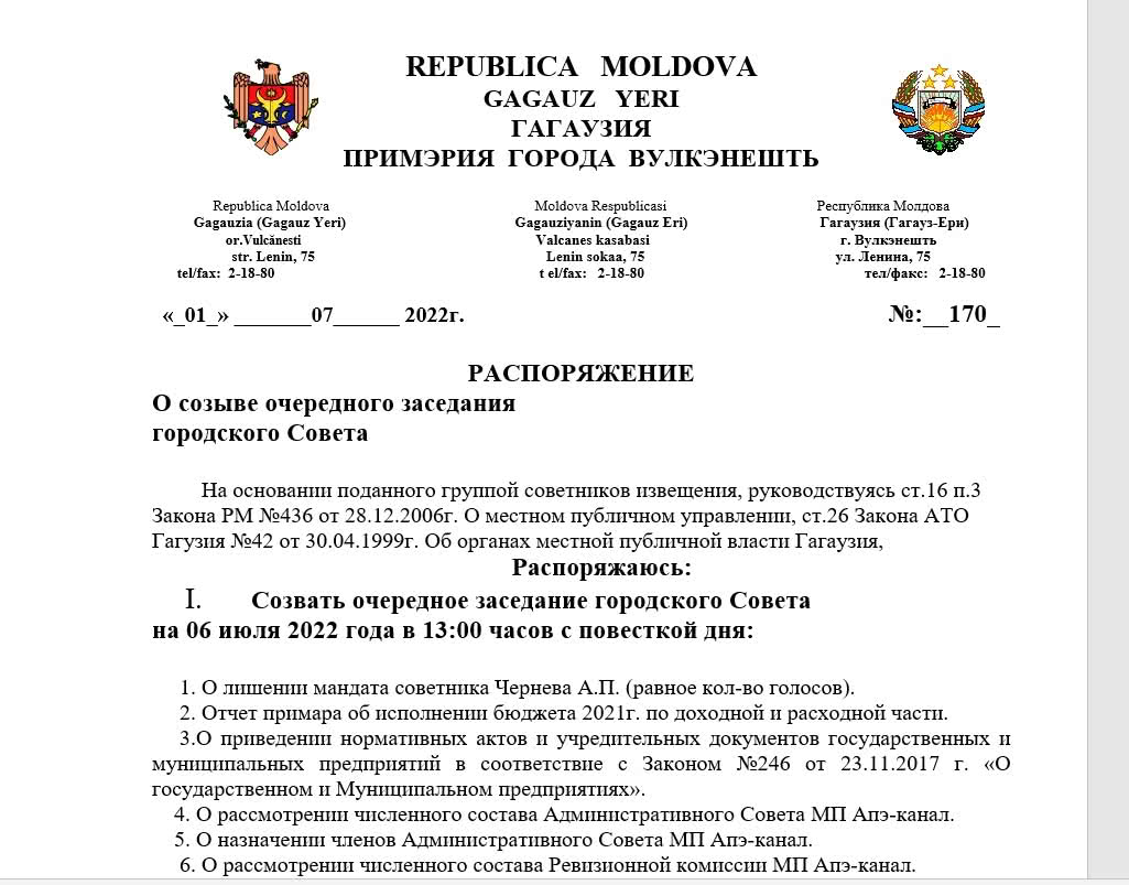 В городе Вулканешты 6 июля состоится очередное заседание городского Совета 1 июля, 2022 Post Navigation Предыдущая новость: В Молдове продлили желтый код из-за жары: ожидается до +36°CСледующая новость: Подростки за рулем – опасно для жизни
