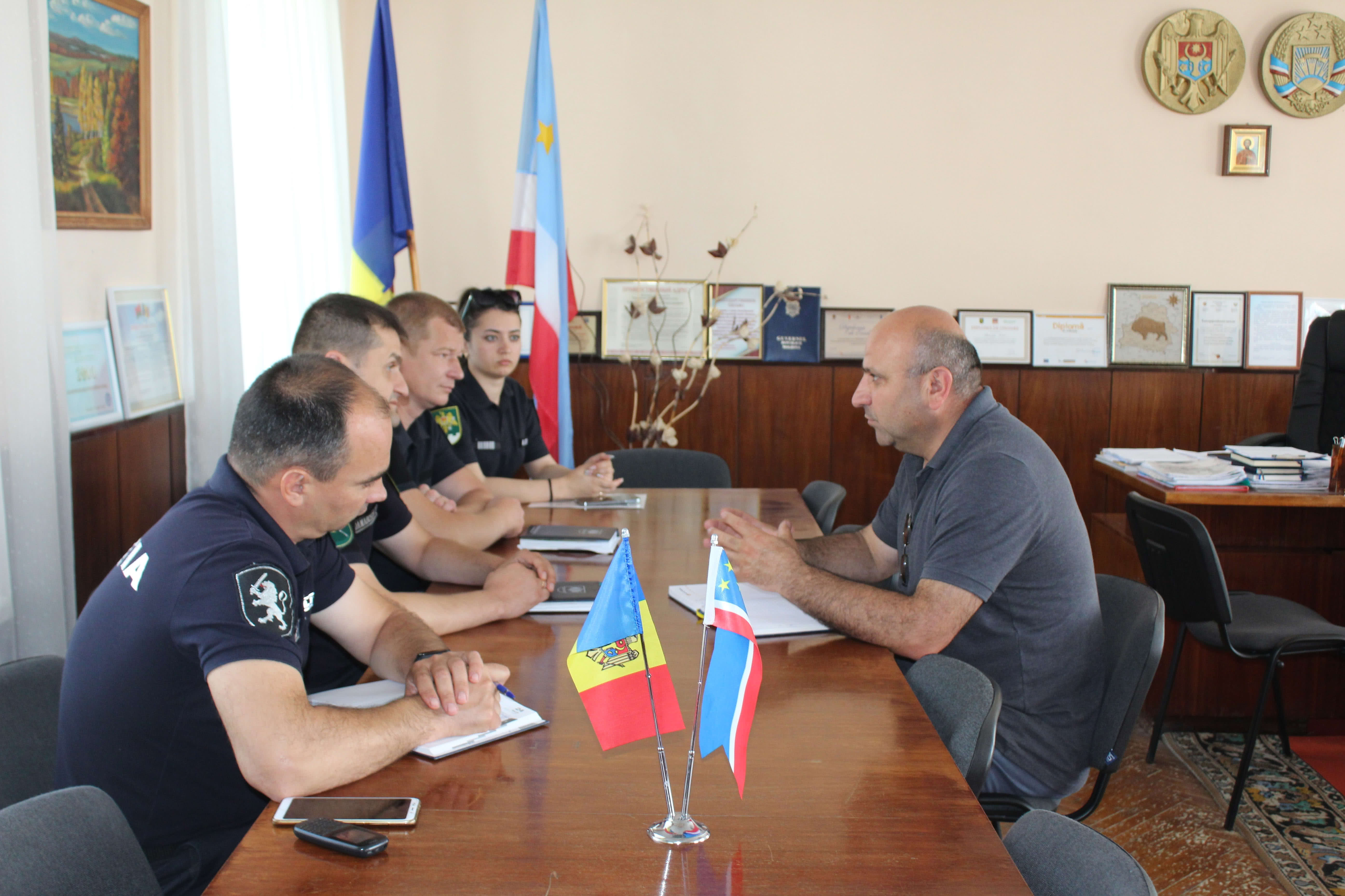 В примарии города Вулканешты, сегодня, 14 июня 2022 года, прошла рабочая встреча примара города Виктора Петриоглу, начальника регионального управления Юг ГИПП Дамаскин В. и заместителя начальника Инспектората полиции Вулканешты Войтенко В..