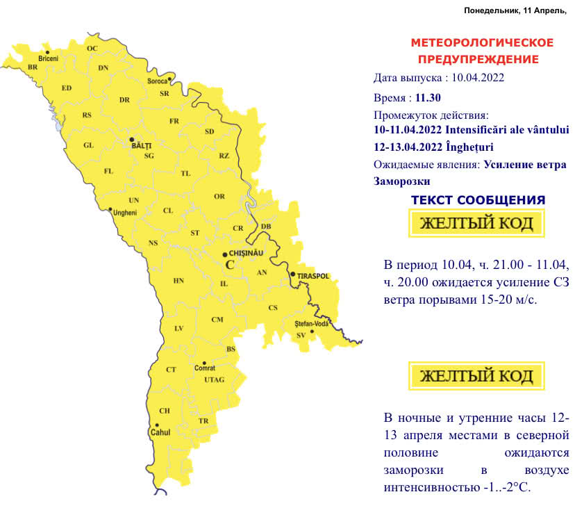 Кроме того, до вечера понедельника, 20:00 11 апреля остается в силе «желтый код» из-за усиления северо-западного ветра до 20 метров в секунду.