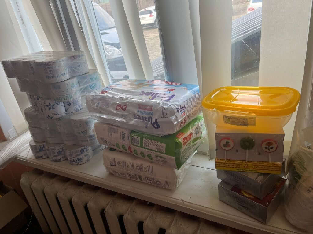 Продукты питания, одежда, постельное белье, средства для гигиены и многое другое было передано в центр «Забота», откуда будет распределено всем нуждающимся беженцам из Украины.