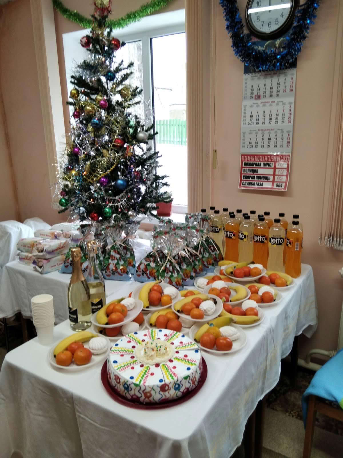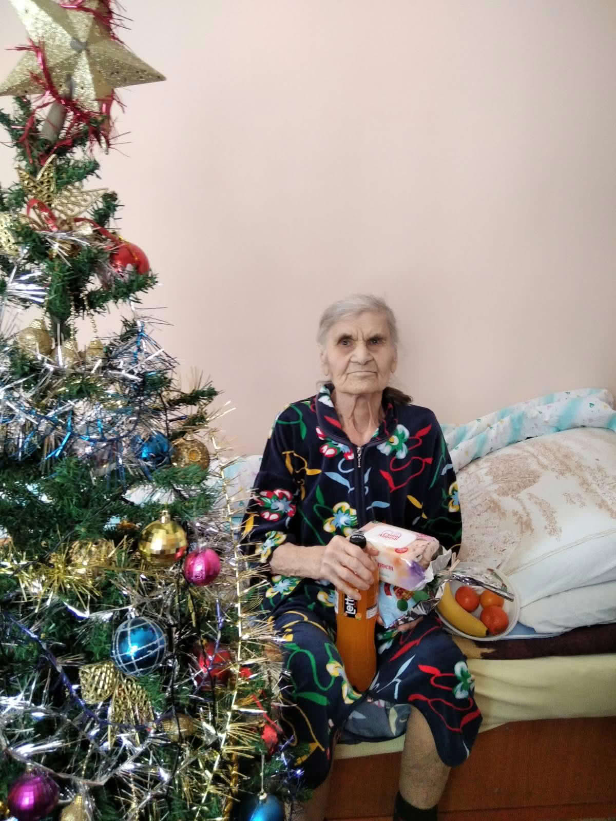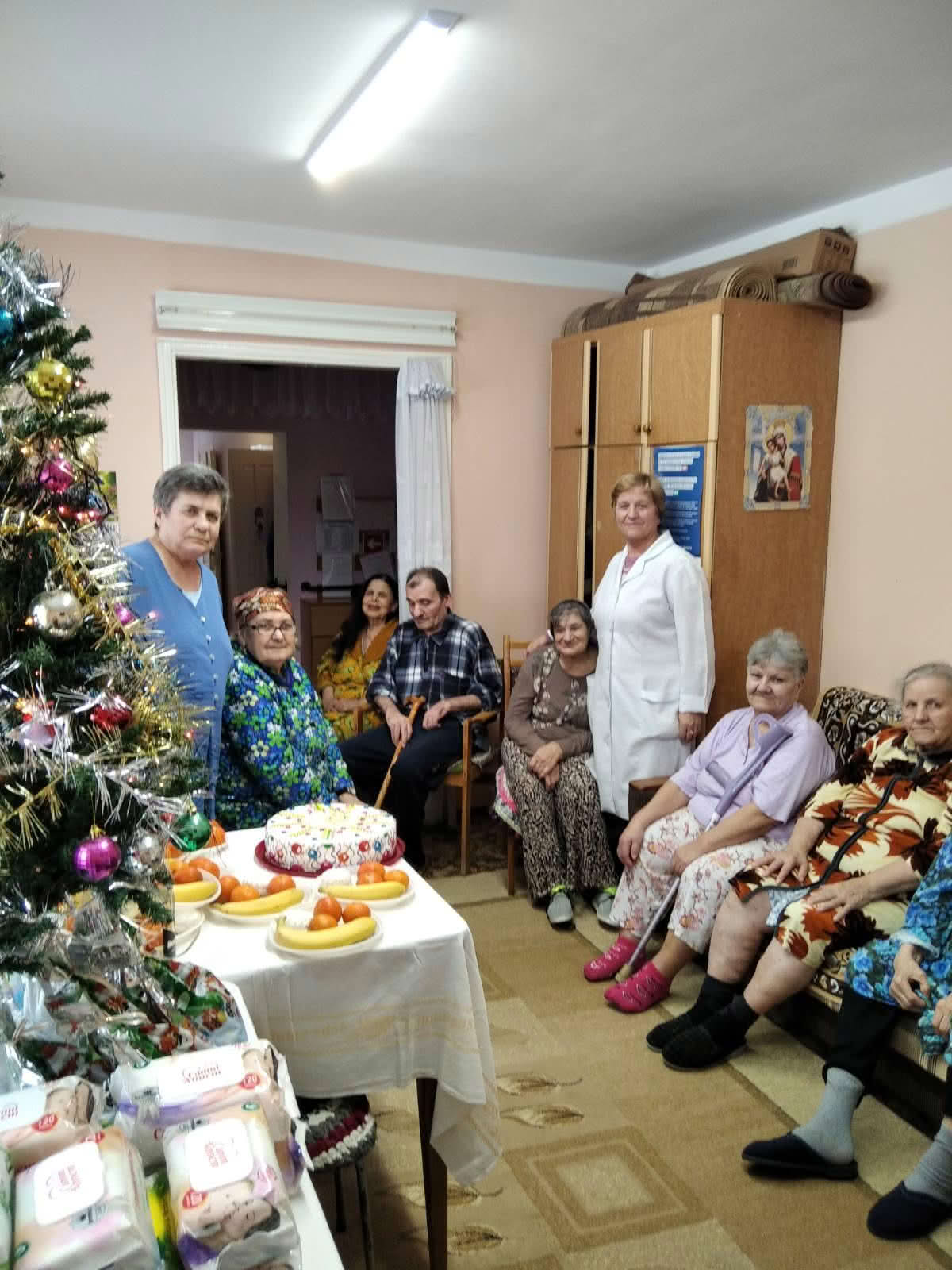 Лежачим больным Новогоднюю ель заносили в комнату. Никто не остался без поздравления.