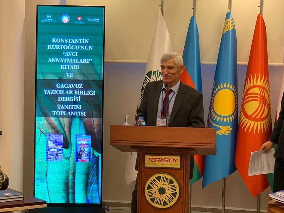 В своем вступительном слове генсек ТЮРКСОЙ Дюсен Касеинов выразил удовлетворение возможностью принимать в штаб-квартире ТЮРКСОЙ мероприятие по случаю выхода второго номера журнала Союза писателей Гагаузии и книги известного гагаузского писателя и историка Константина Курдогло «Записки охотника».