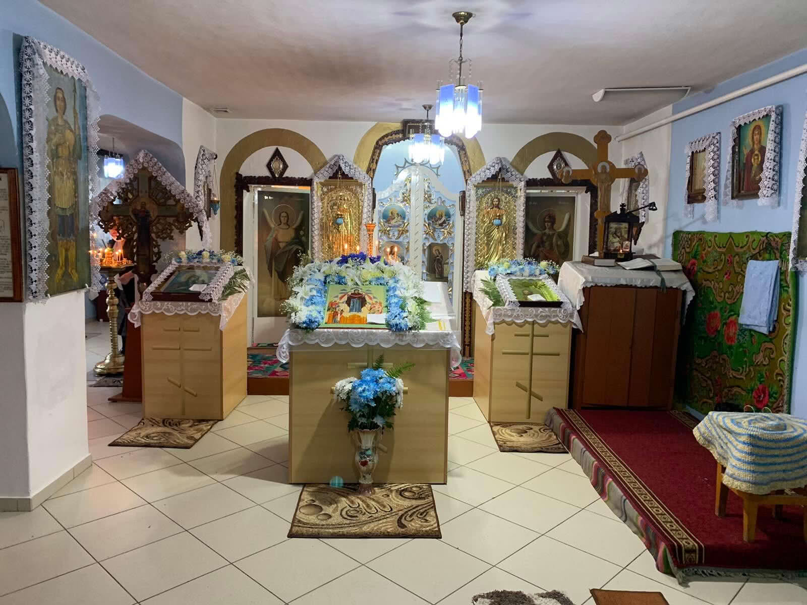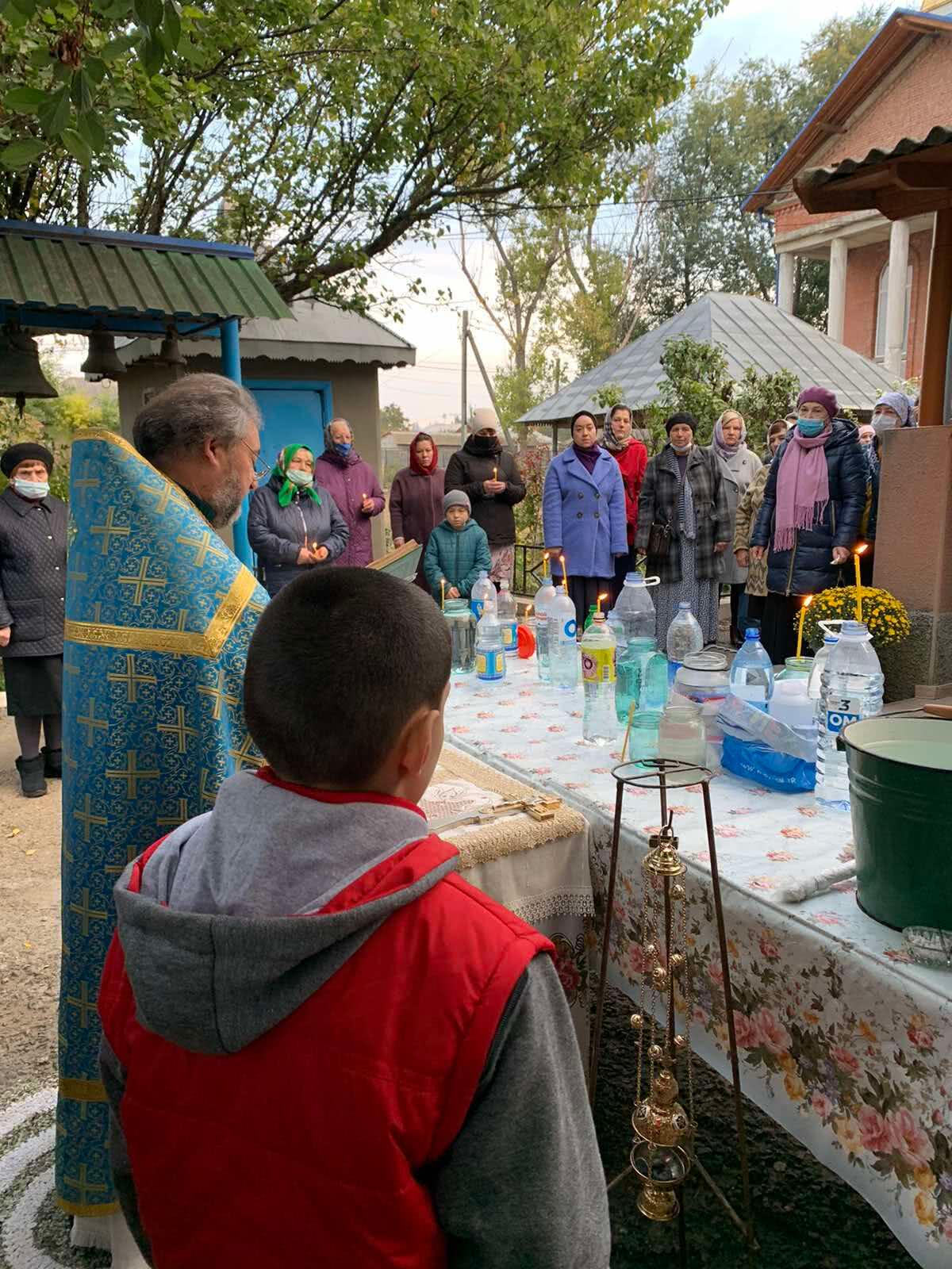 В храме состоялось Малое освящение Воды, Божественная Литургия, Акафист Покрова Пресвятой Богородицы. Также прихожан поздравили протоиерей Анатолий Ращенко и протоиерей Иоанн Гаргалык.