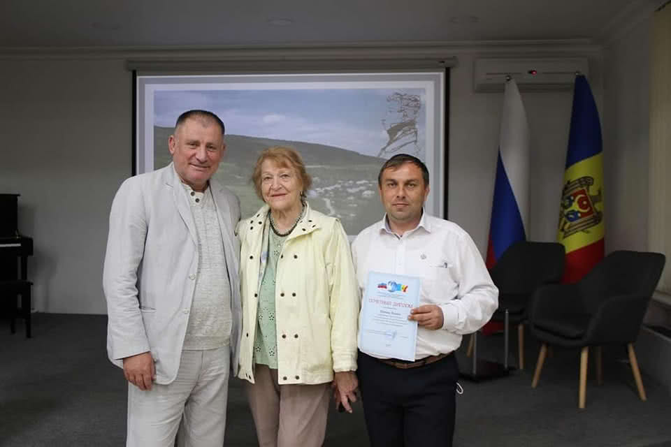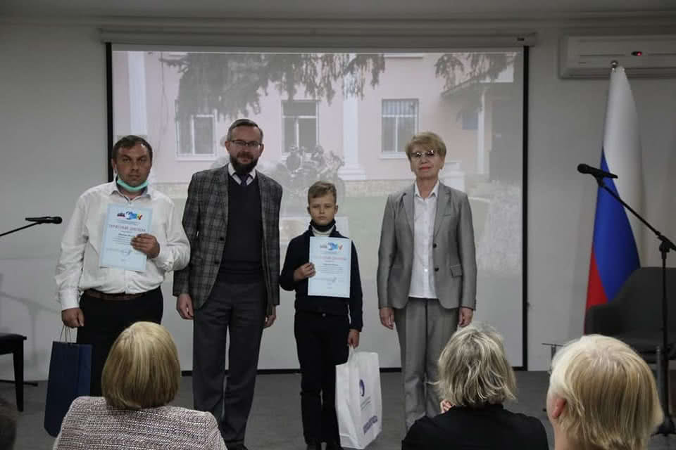 Победителю конкурса Эдуарду Газулу из Бендер диплом и приз вручила супруга Посла России в Республике Молдова Татьяна Васнецова.