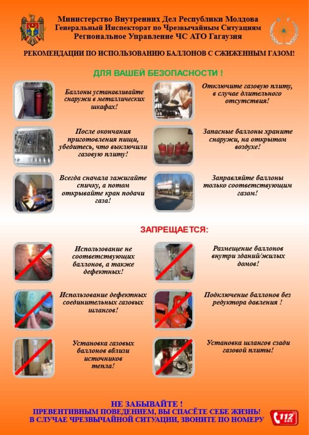 Гражданам напоминают о правилах использования газовых баллонов в быту 9 сентября, 2021 Post Navigation Предыдущая новость: Бригады скорой помощи будут тестировать пациентов на коронавирус на домуСледующая новость: В Молдове на национальном уровне вводится режим чрезвычайного положения