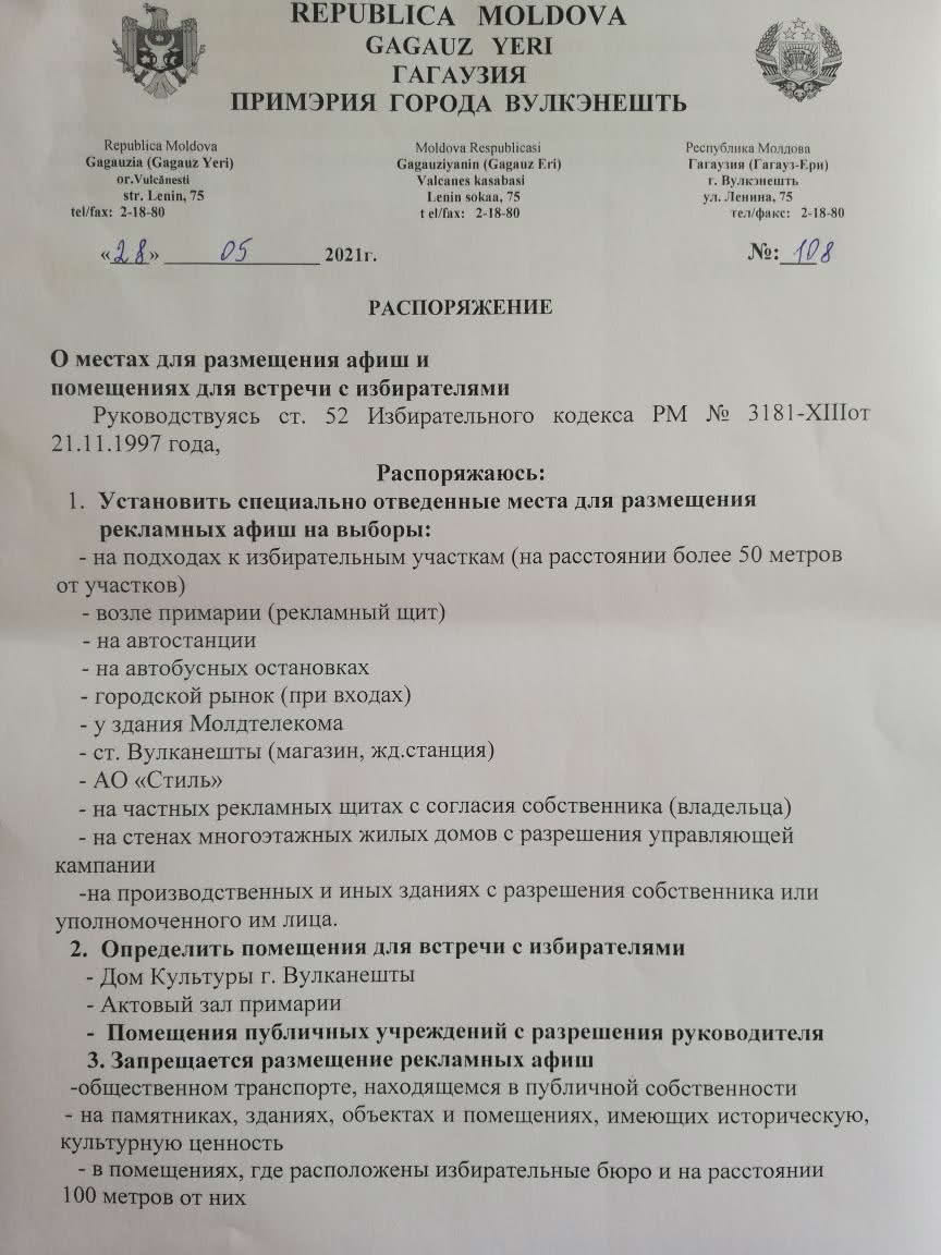 В городе Вулканешты были определены места для размещения предвыборных афиш 28 июня, 2021 Post Navigation Предыдущая новость: Начат приём заявок на голосование с помощью мобильной урныСледующая новость: Более 70% лицеистов сдали экзамен на степень бакалавра
