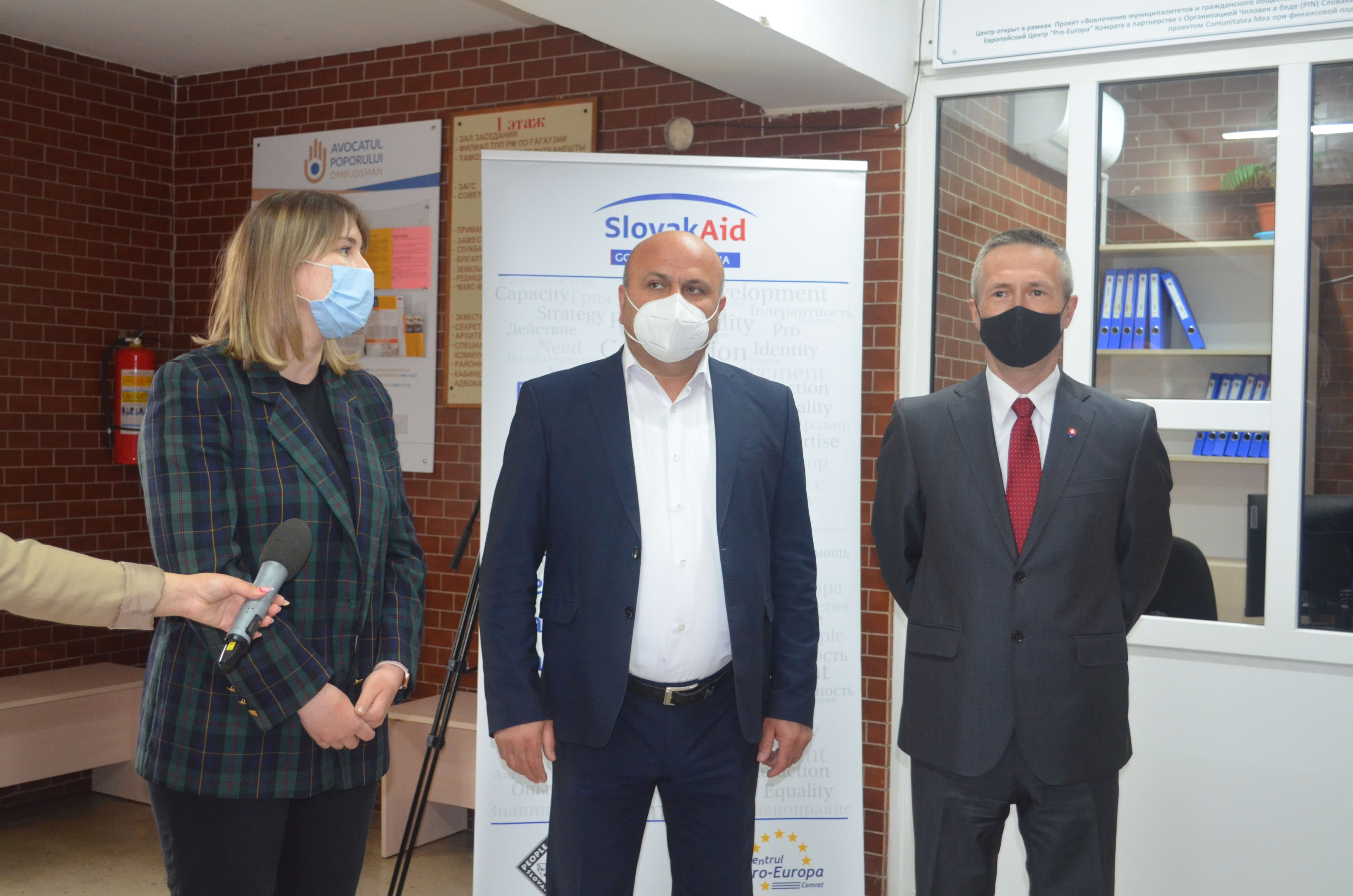 Открытие Центра стало возможным благодаря проекту «Укрепление прозрачности и эффективности функционирования самоуправления и создание потенциала гражданского общества в Молдове», внедряется в партнерстве с организацией «Человек в беде» (Словакия) и общественным объединением Европейский центр “Pro-Europa” (Комрат) и финансируется при поддержке Slovak Aid.