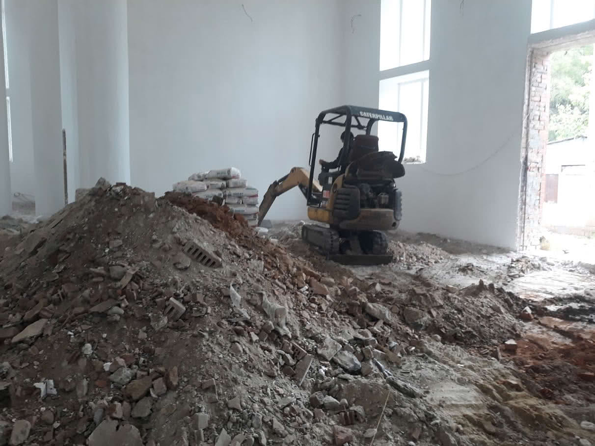 Приступили к полам, почистили все и убрали мусор, после чего будет трамбовка и засыпка. Потом уже будет заливаться черновой слой бетона, подложка, теплый пол и слой чистового пола, отметил отец Иоанн.