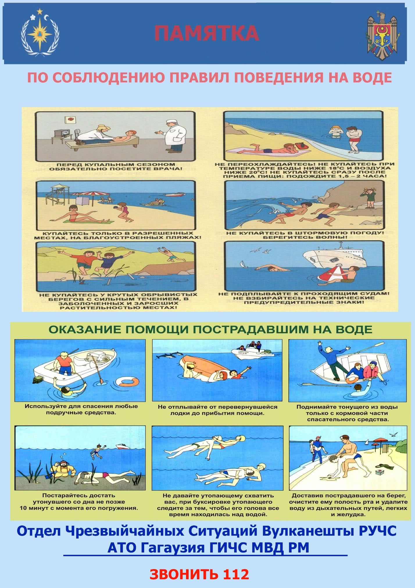 Служба Предупреждения Отдела Чрезвычайных Ситуации Вулканешты убедительно просит соблюдать правили поведения на воде: