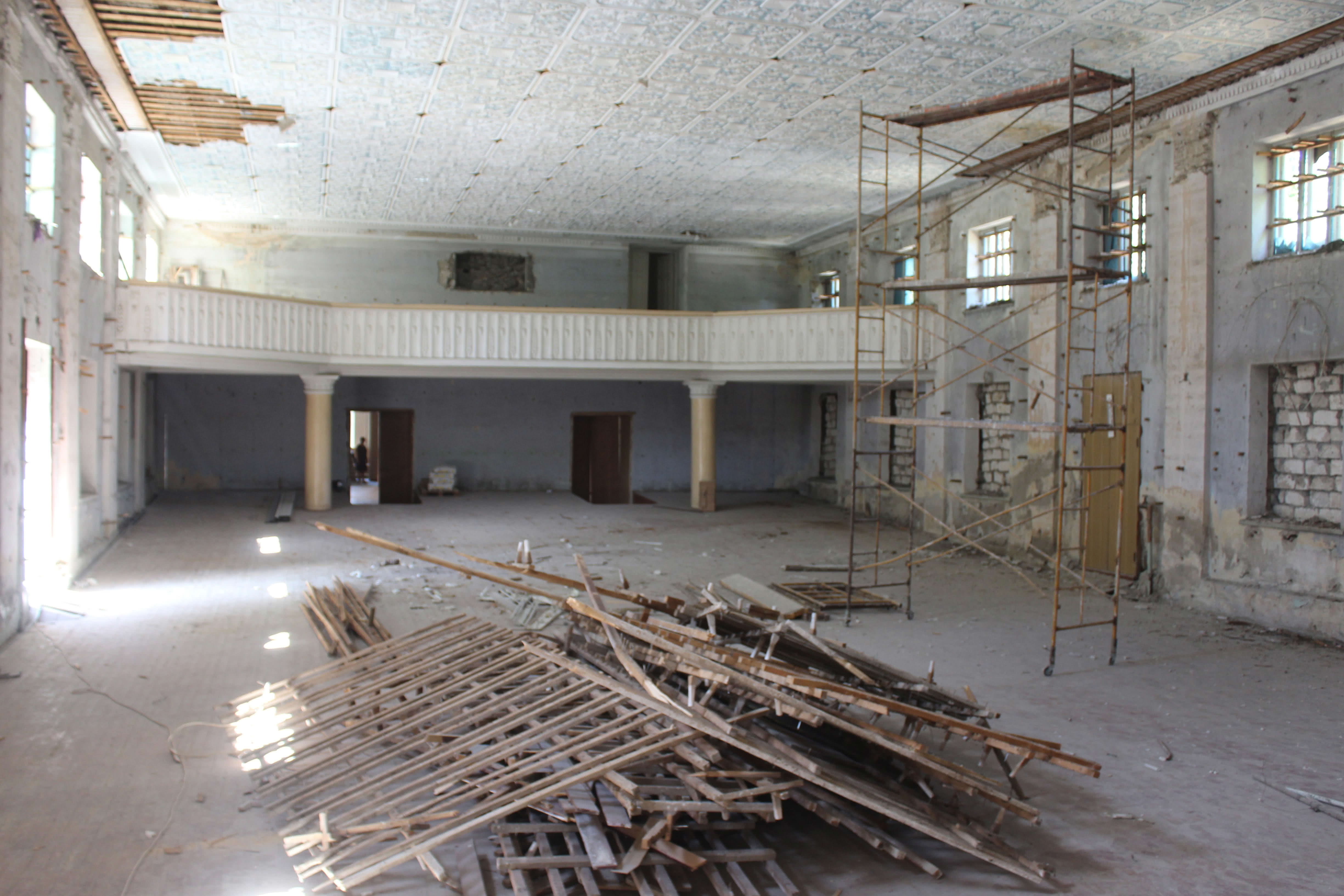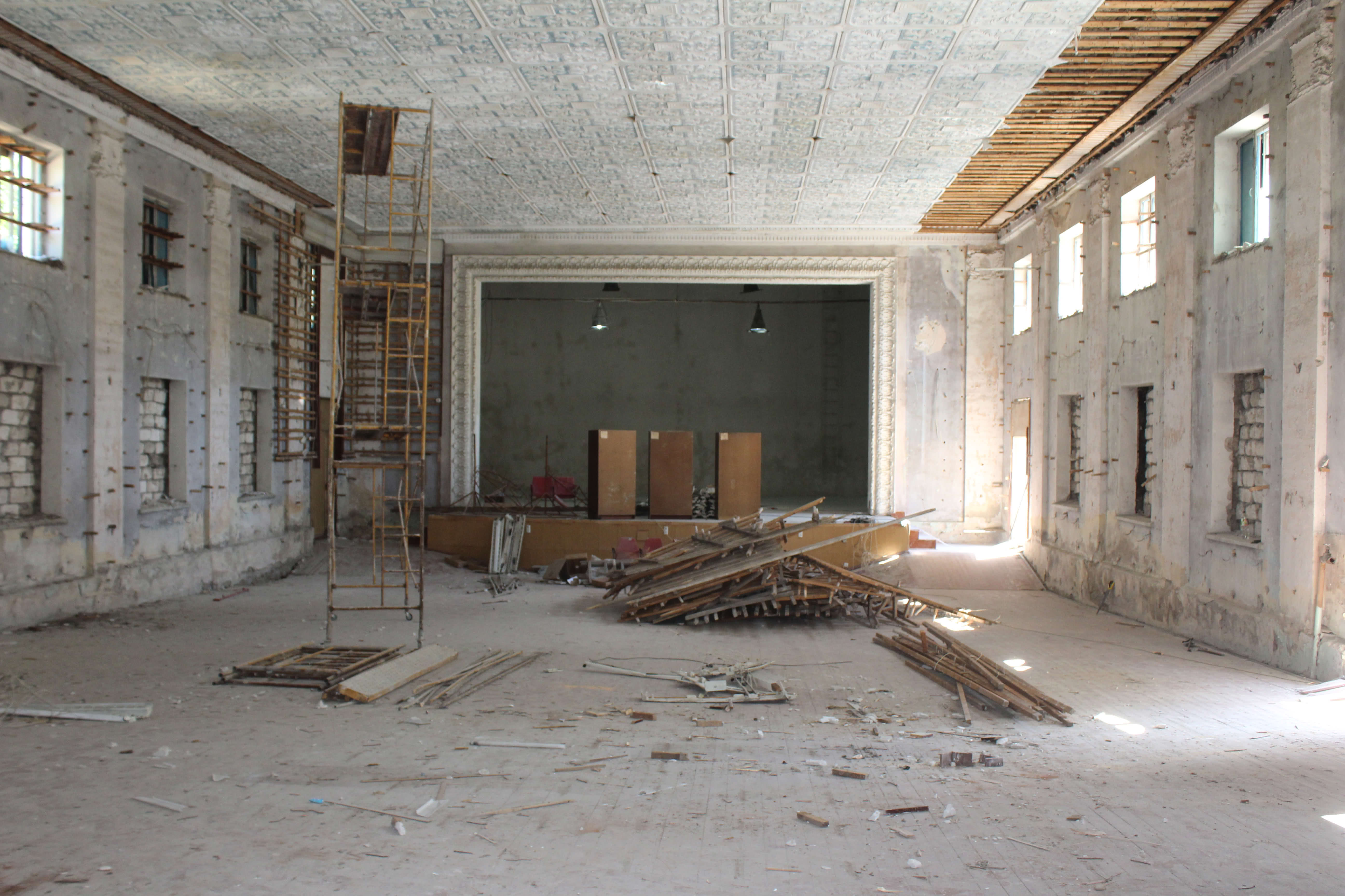 Согласно договору, подписанному 16 мая с Агентством Регионального Развития, в Доме Культуры начался капитальный ремонт. На данный момент работы охватывают одновременно сцену, зал и второй этаж.