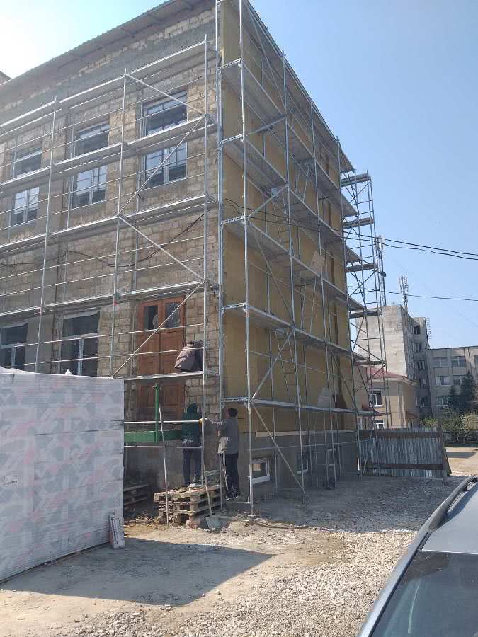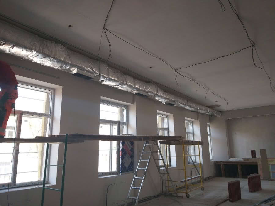 Что касается уличных работ, на данном этапе строители демонтируют старую штукатурку с фасада здания со стороны двора и вскоре приступят к его утеплению, что в дальнейшем способствует нормализации микроклимата внутри учебного заведения.