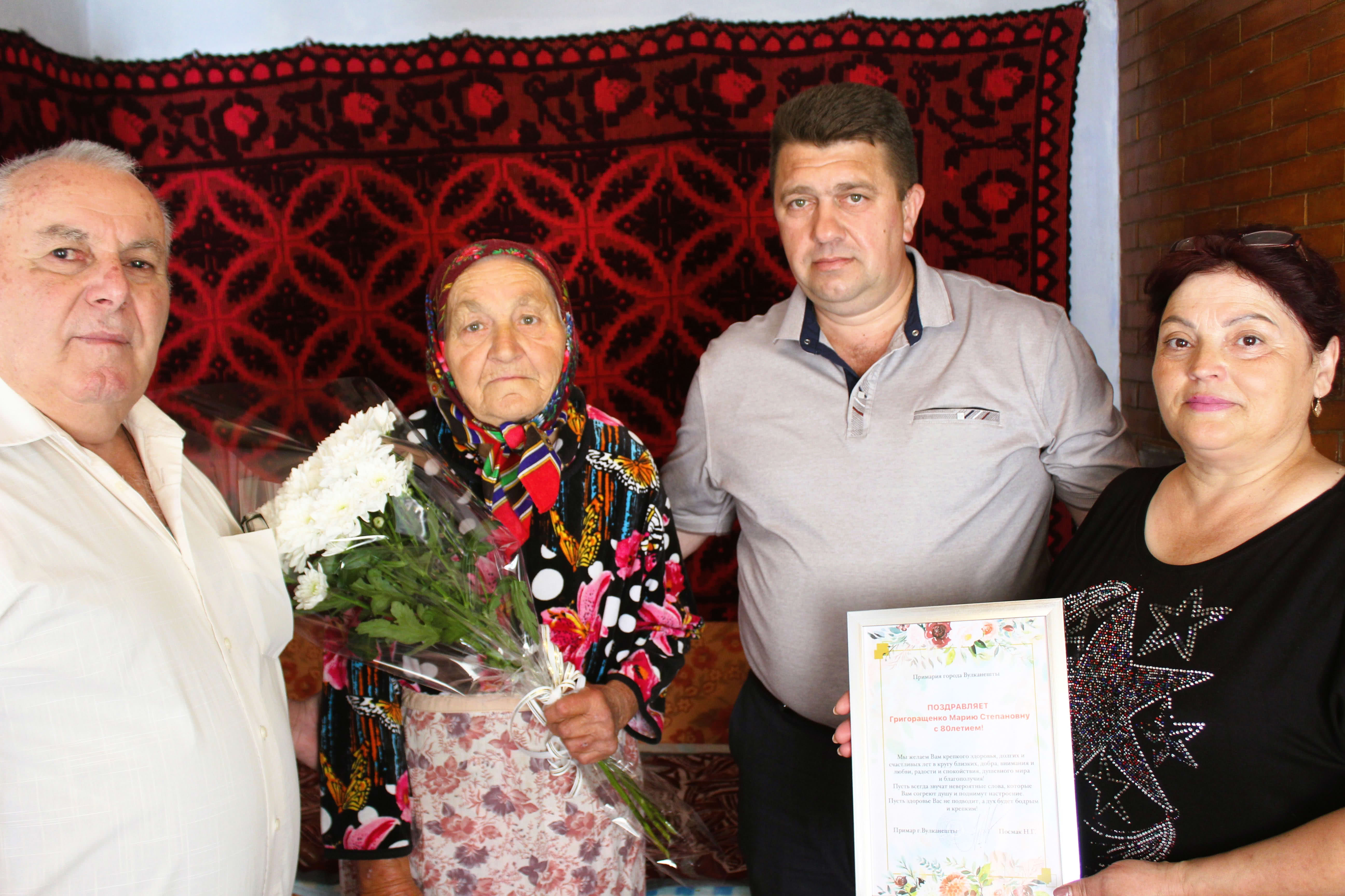Сегодня примар города Посмак Н.Г. и председатель Совета старейшин Колиш Ф.Г. поздравили с 80-летием жительницу г.Вулканешты Григоращенко Марию Степановну.
