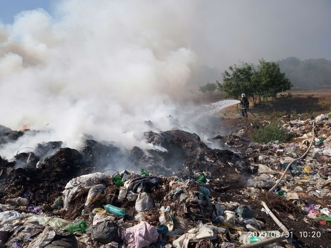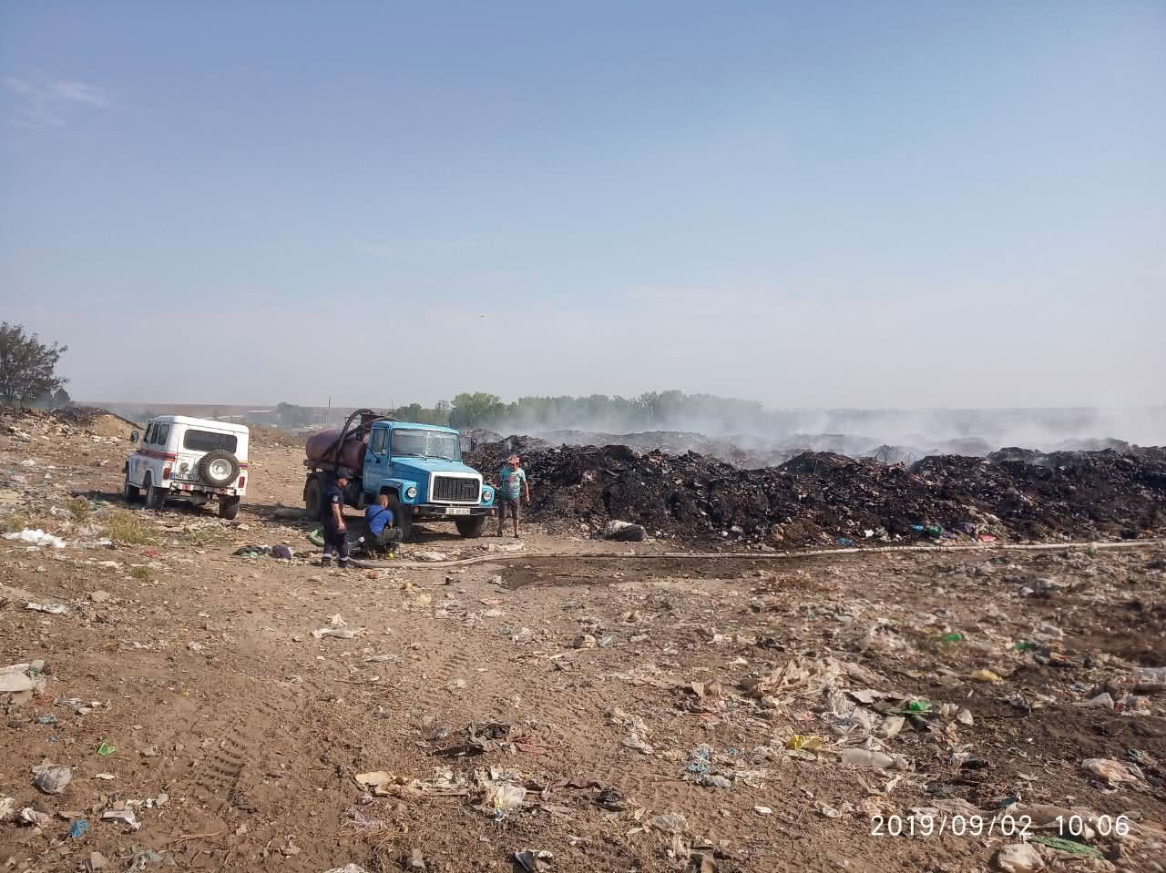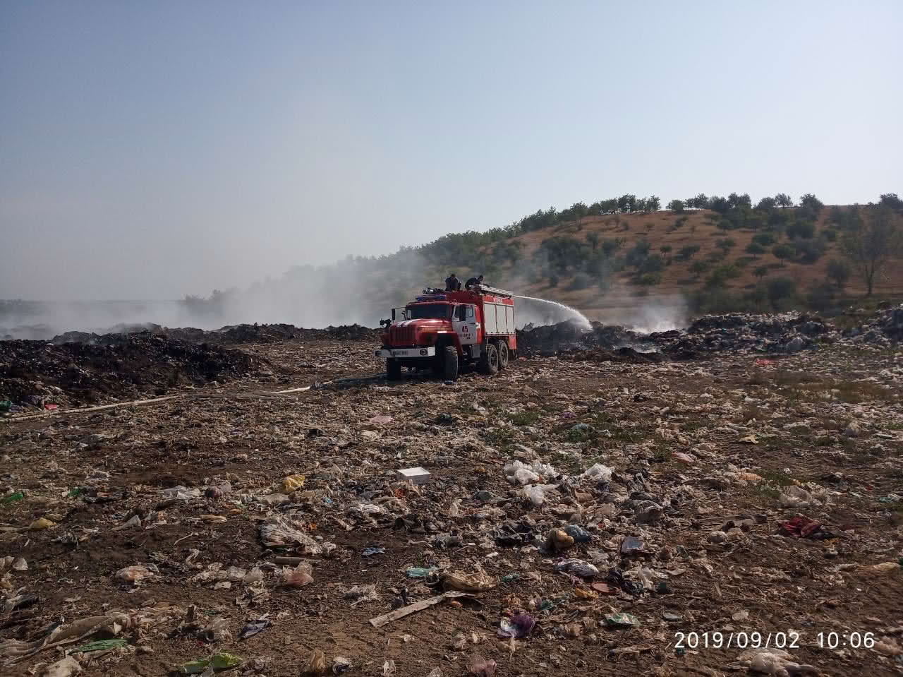 Напоминаем, что в ночь с 30 на 31 августа, неизвестный лица произвели поджог мусоросвалки. Специалистами было обнаружено 3 новых очага возгорания.