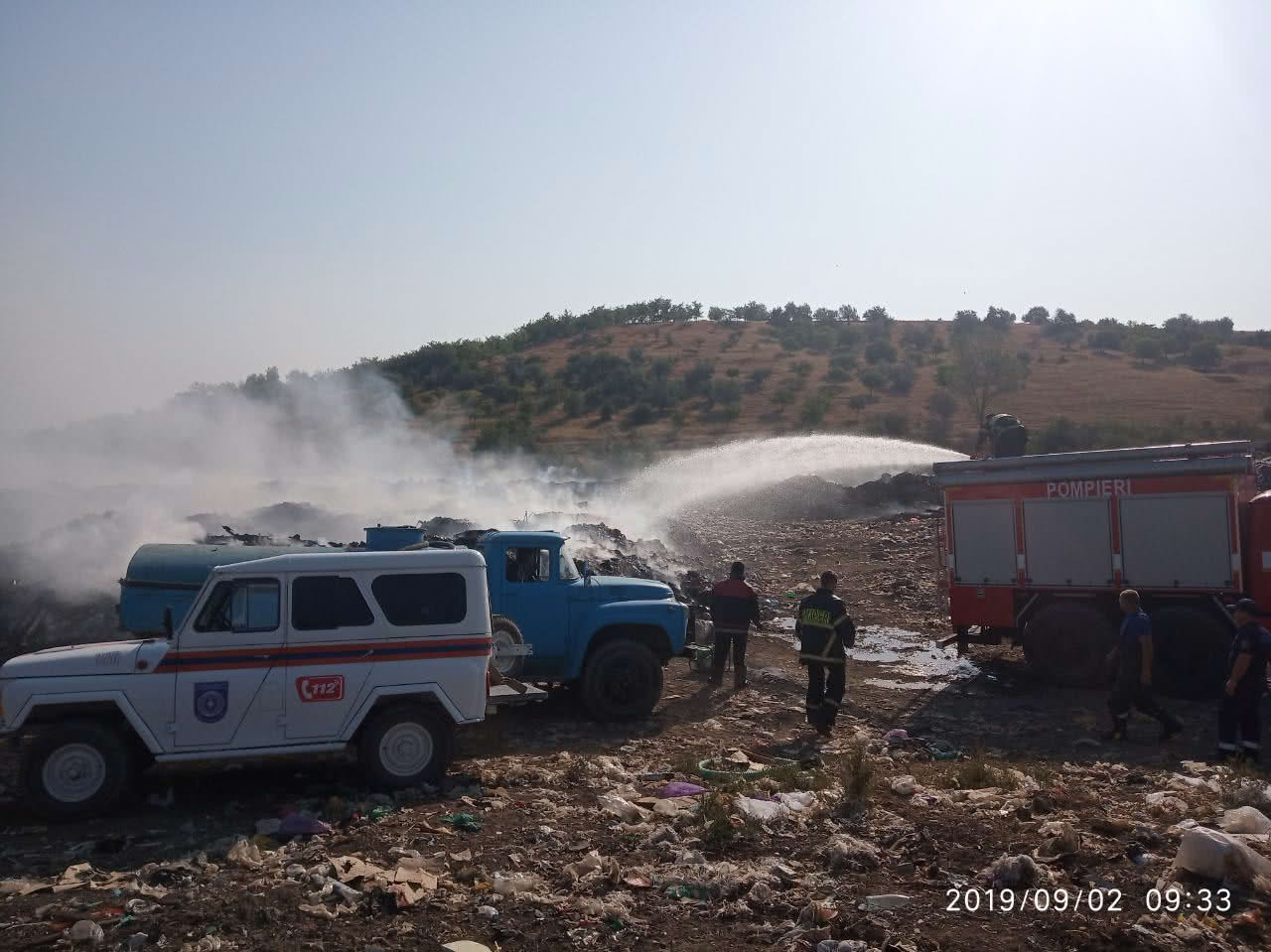 В городе Вулканешты проводятся работы по ликвидации возгорания мусорной свалки