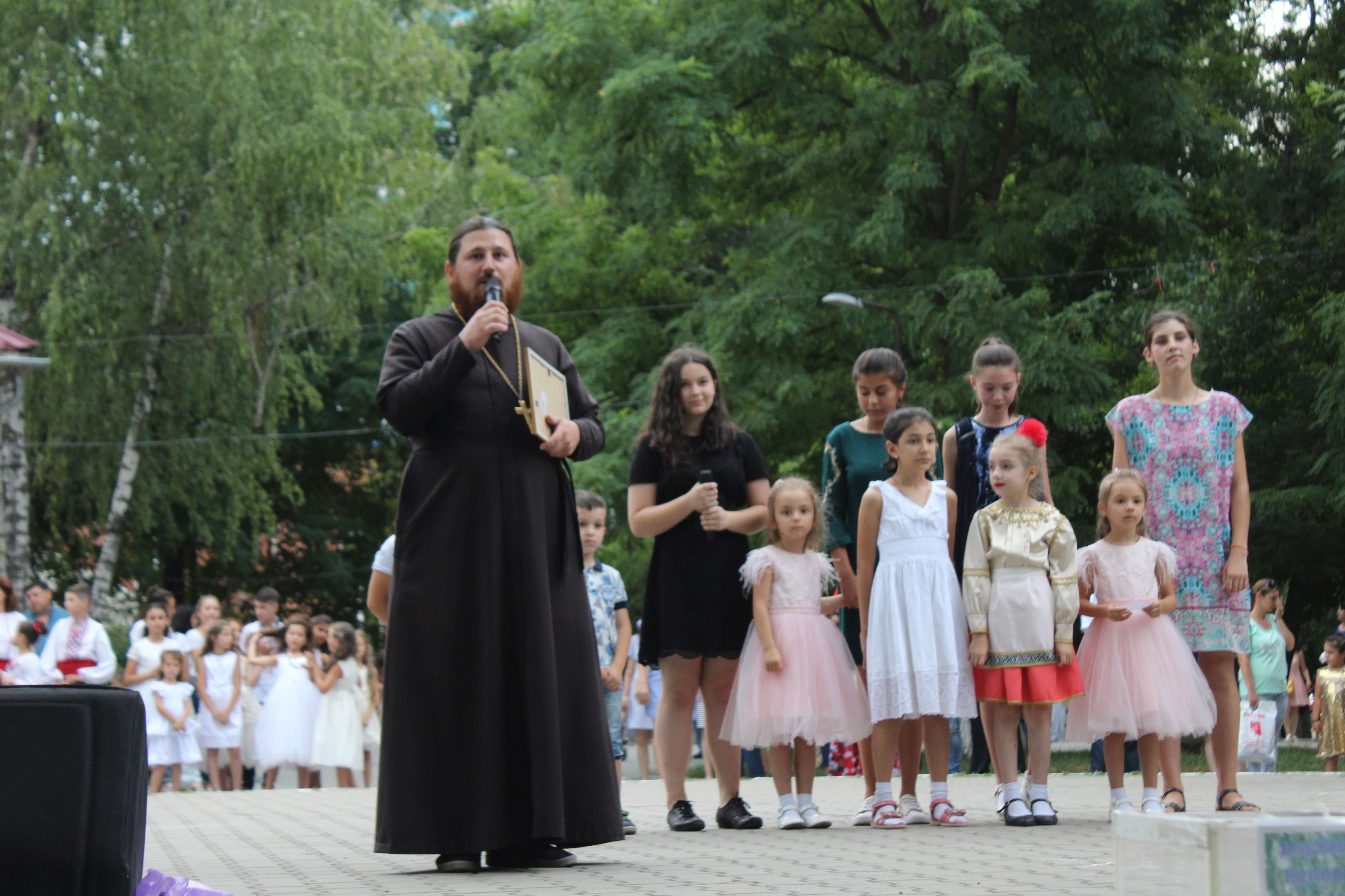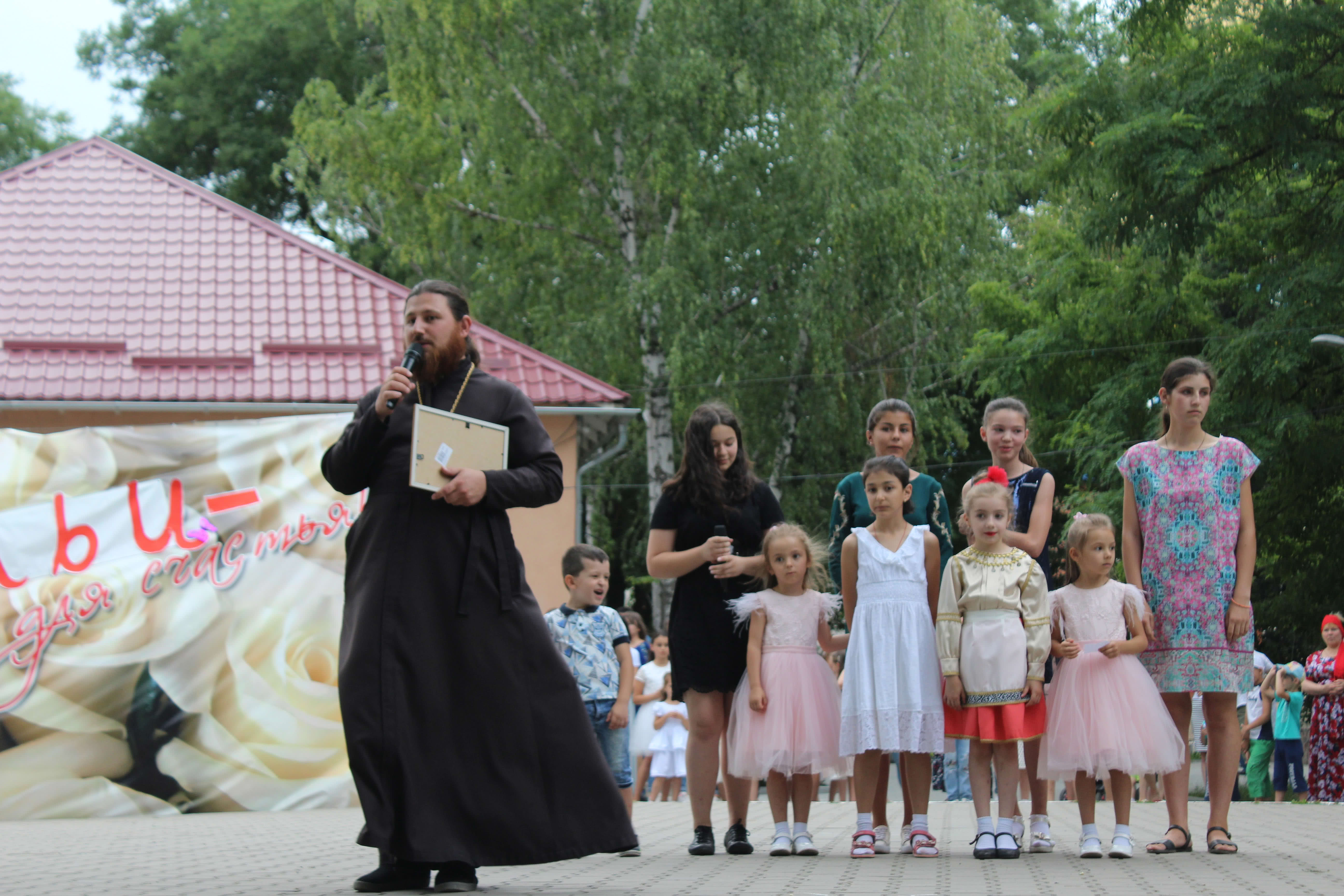 Отец Иван поздравил всех жителей с этим замечательным семейным праздником и это еще не всё. Клирик Храма Иоанн с матушкой и детьми подготовили выступление с поздравительной программой, ко Дню семьи любви и верности, Святых Благоверных Князей Петра и Февронии Муромскиих.