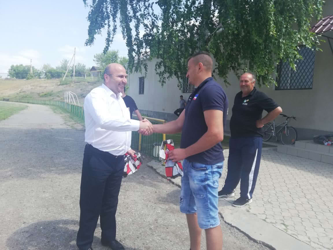 Градоначальник поздравил футболистов с победой и Международным днем защиты детей и угостил футболистов сладостями.