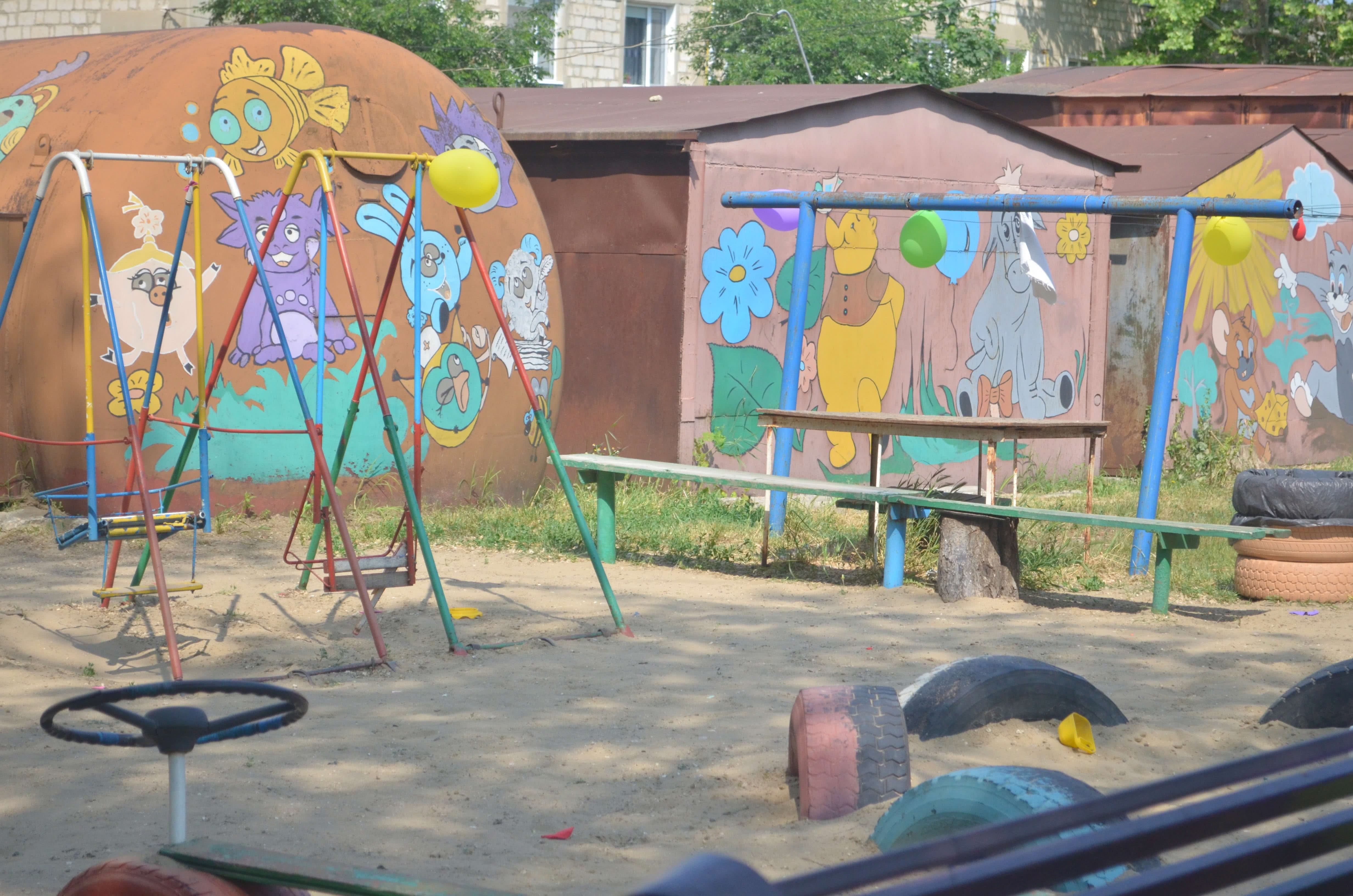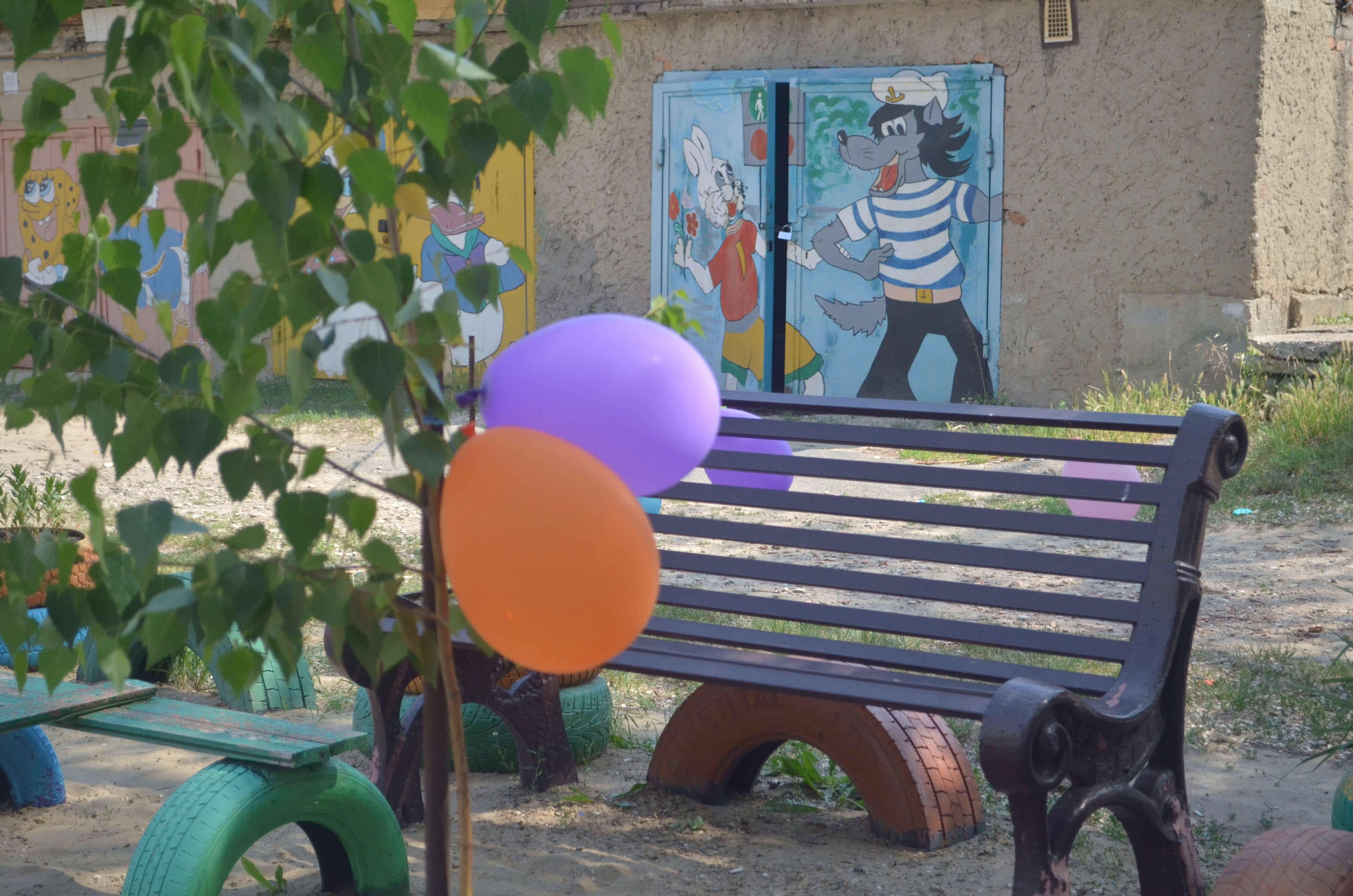Еще вечером, накануне праздника, жители многоэтажного дома подготовились основательно: подмели и побелили бордюры, украсили свой двор шарами, тем самым сделав сюрприз для детей.
