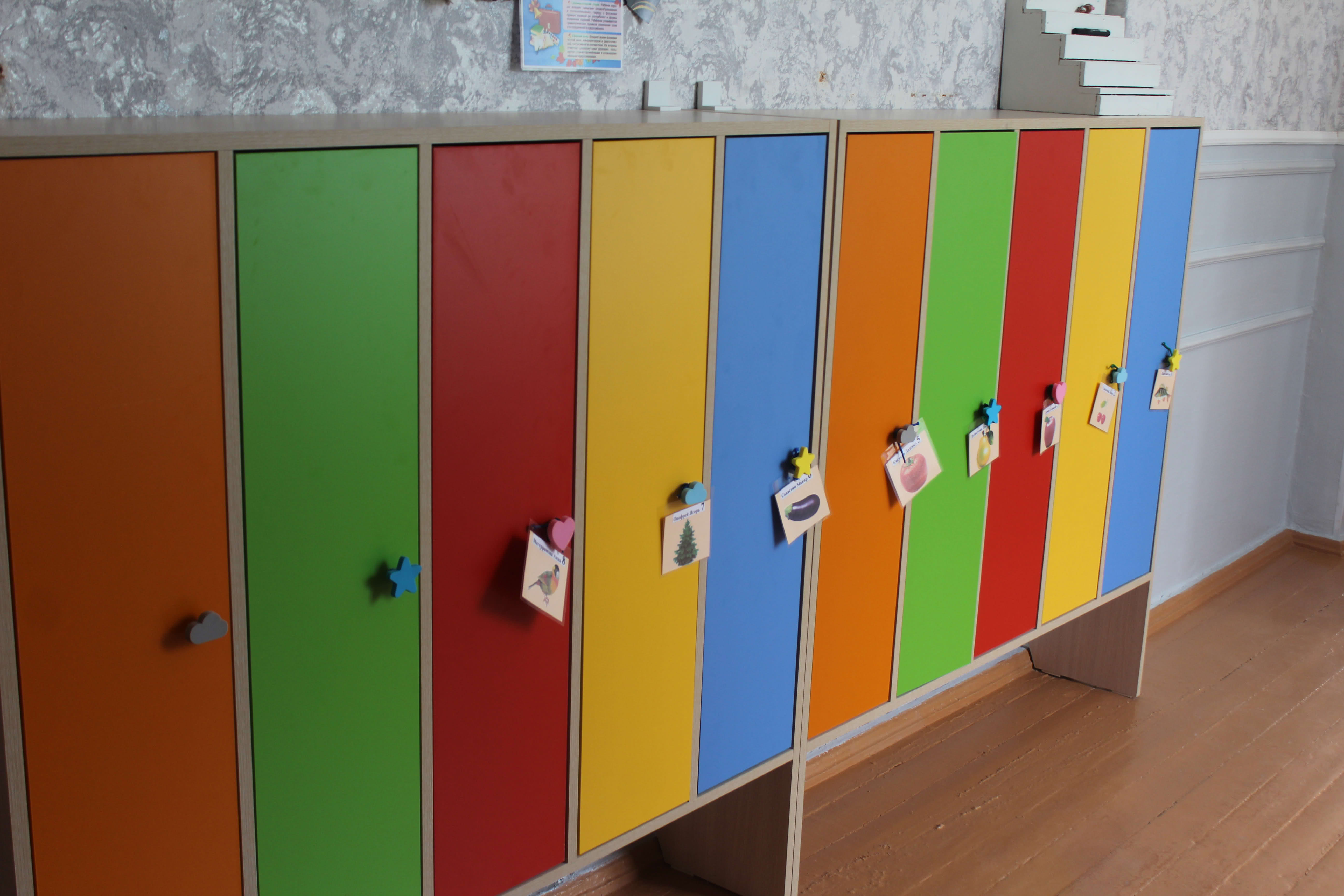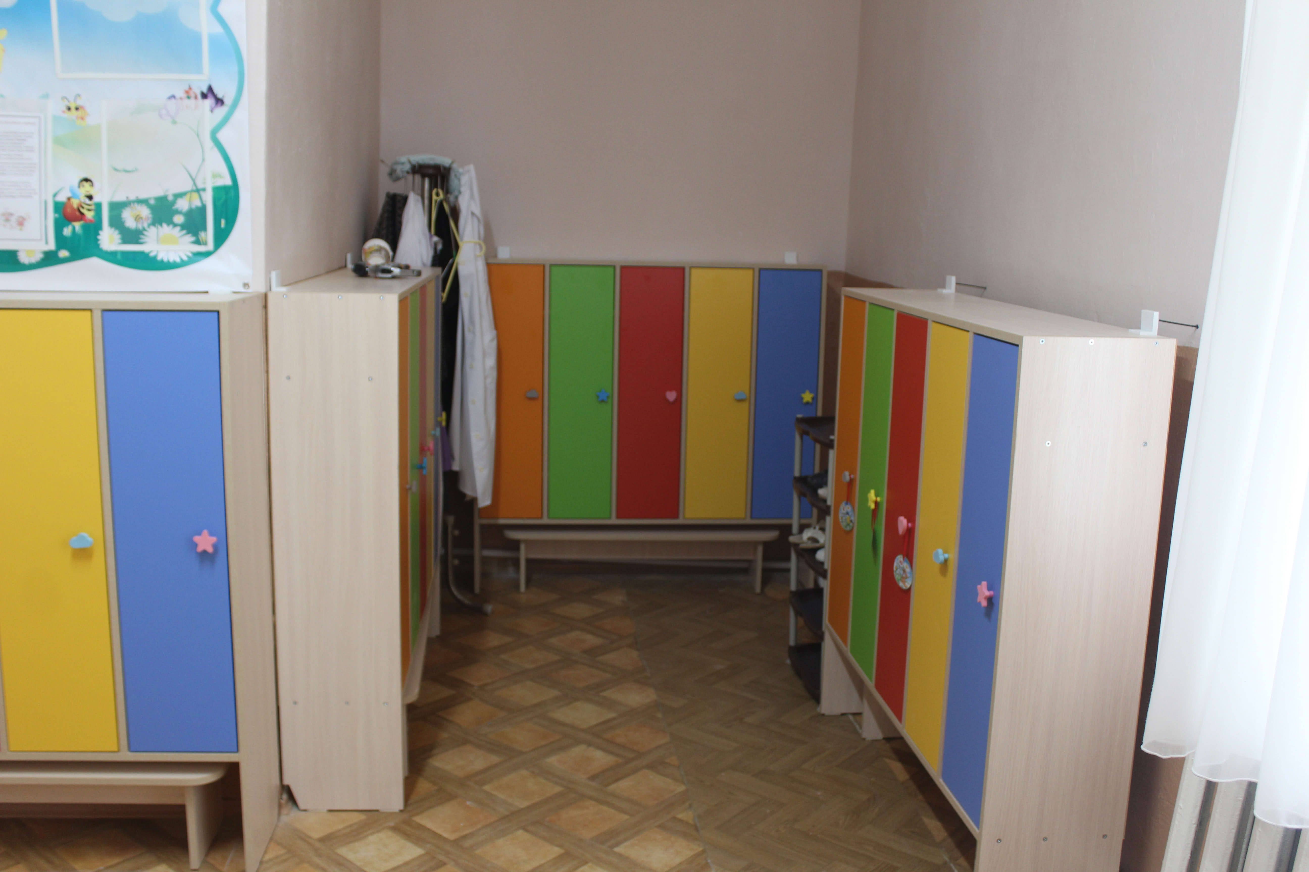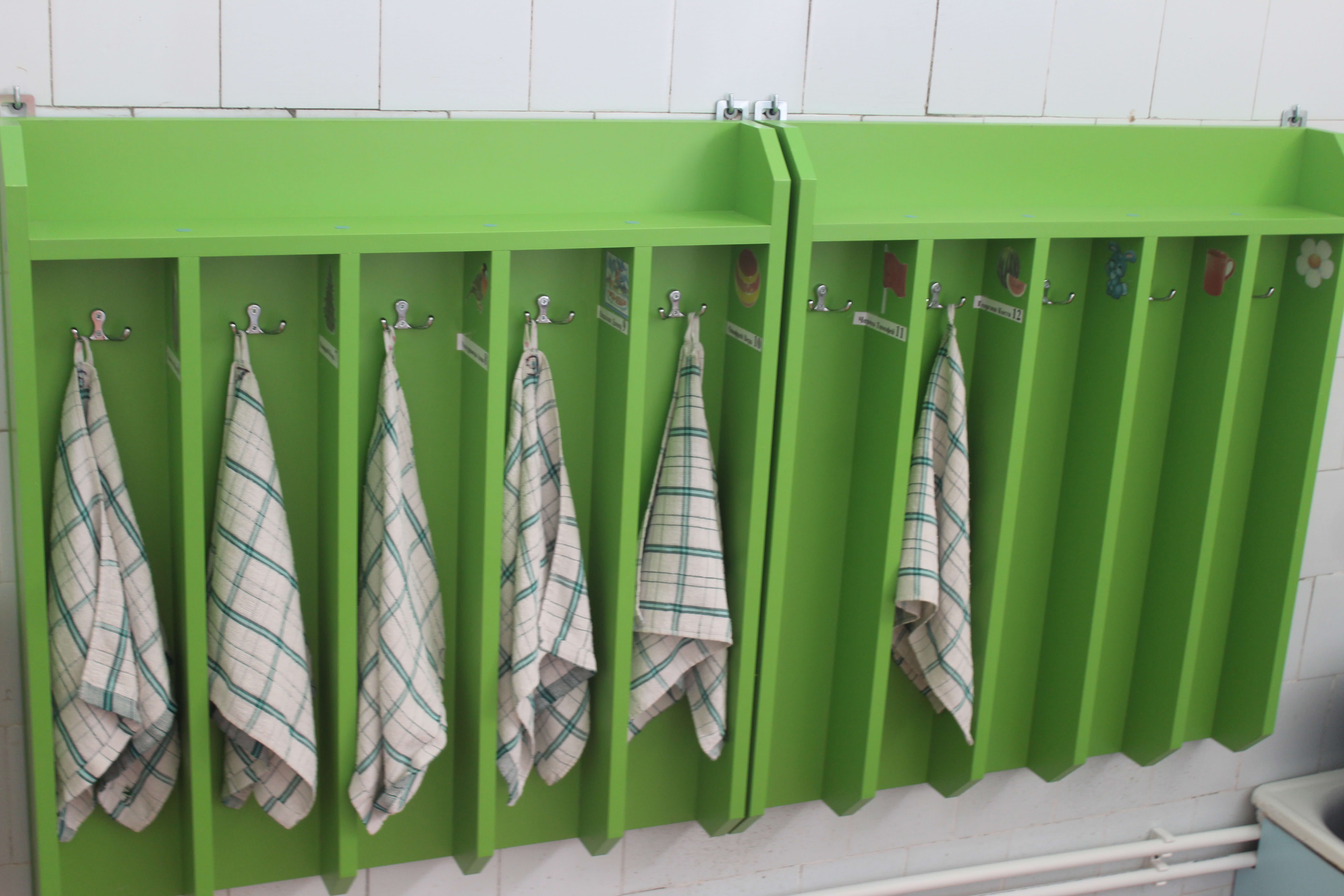 Старые шкафчики для детей, которые находились в ужасающем состоянии, были заменены на новые удобные шкафы во всех группах, также были заменены полочки для полотенец.