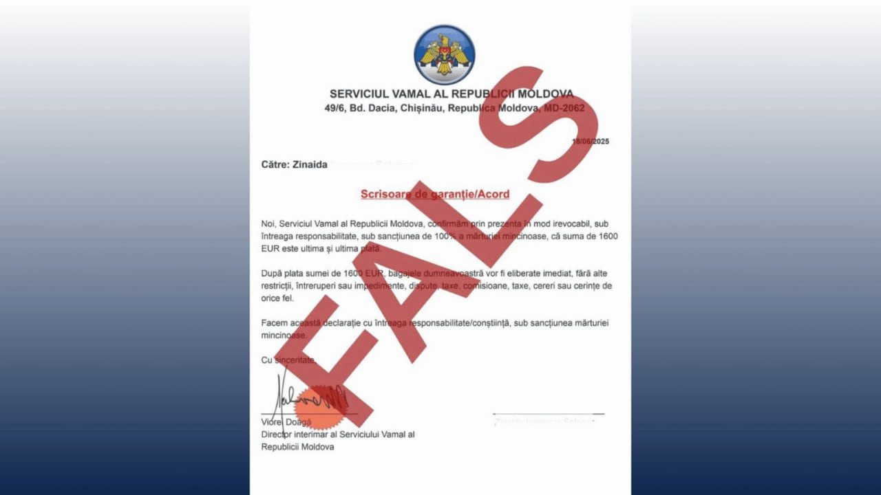 Таможенная служба Республики Молдова выпустила официальное предупреждение о фальшивом документе, который распространяется в интернете под видом «Гарантийного письма/Соглашения». Подделка содержит ложные сведения о якобы обязательных платежах за выдачу багажа.