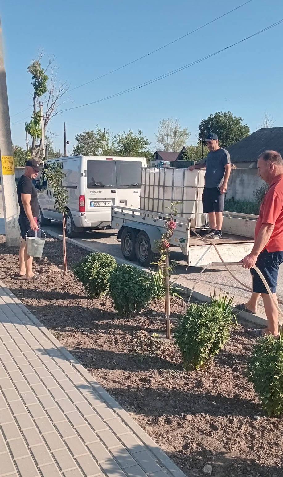 Сегодня ранним утром сотрудники примарии снова провели полив зелёных насаждений по всему городу. Это особенно важно в условиях засушливой погоды.