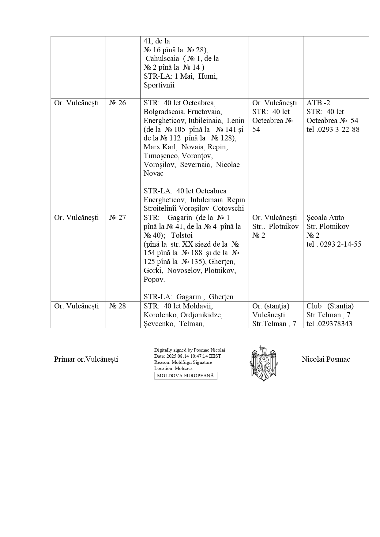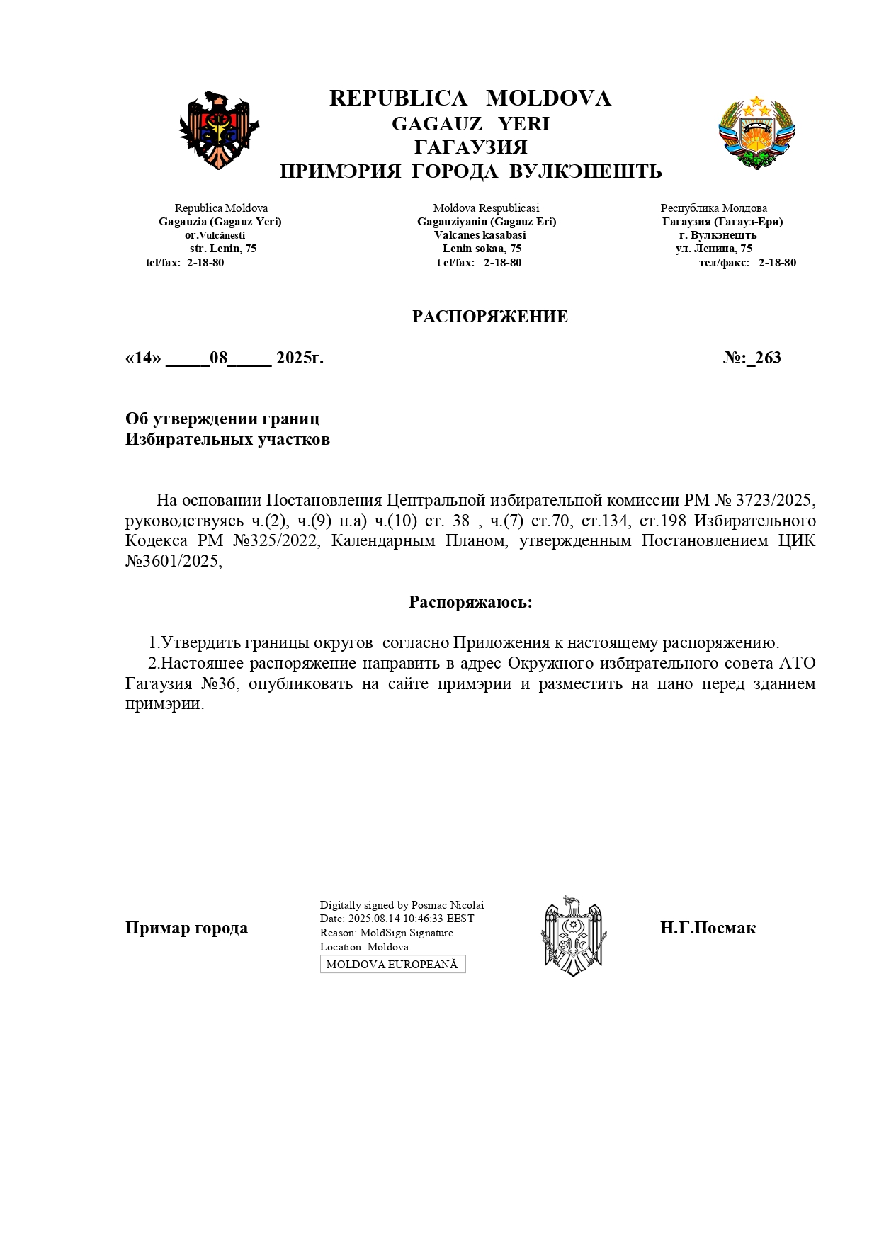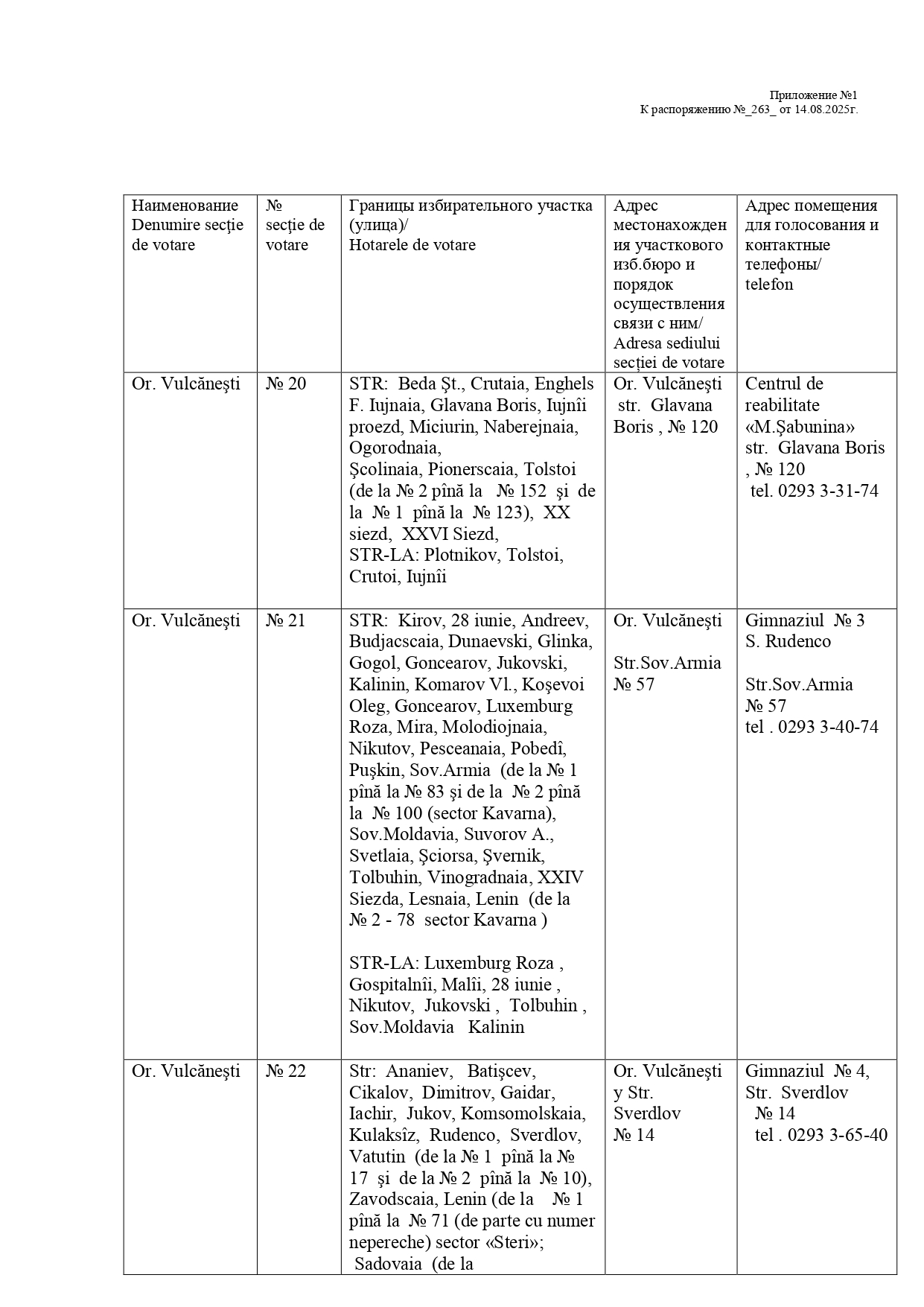 На основании Постановления Центральной избирательной комиссии РМ №3723/2025 были утверждены границы избирательных участков к парламентским выборам 28 сентября 2025г.