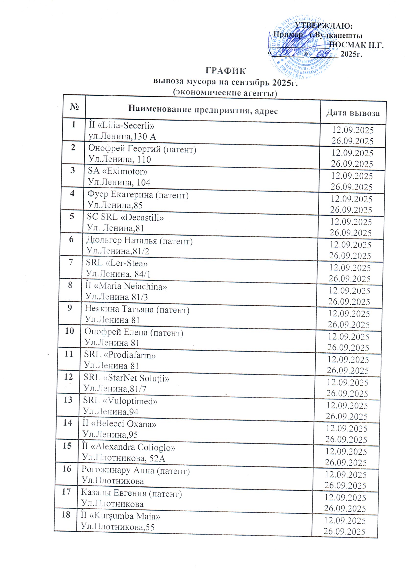 Объявления Отдел благоустройства График вывоза мусора на сентябрь 2025 года для экономических агентов 4 сентября, 2025 График вывоза мусора на сентябрь 2025 года для экономических агентов Post Navigation Предыдущая новость: На городском стадионе состоится матч Чемпионата Гагаузии по футболу среди взрослых командСледующая новость: Образцовый ансамбль «YILDIZLAR» принимает участие на фестивале в Турции Другие новости в данной катерогии: Объявления Семинар для ассоциаций жильцов 14 апреля, 2026 Важное Объявления Объявление о приватизации жилья 19 марта, 2026 Объявления В песчаном карьере будут проводиться учебные стрельбы с 25 по 26 марта 17 марта, 2026